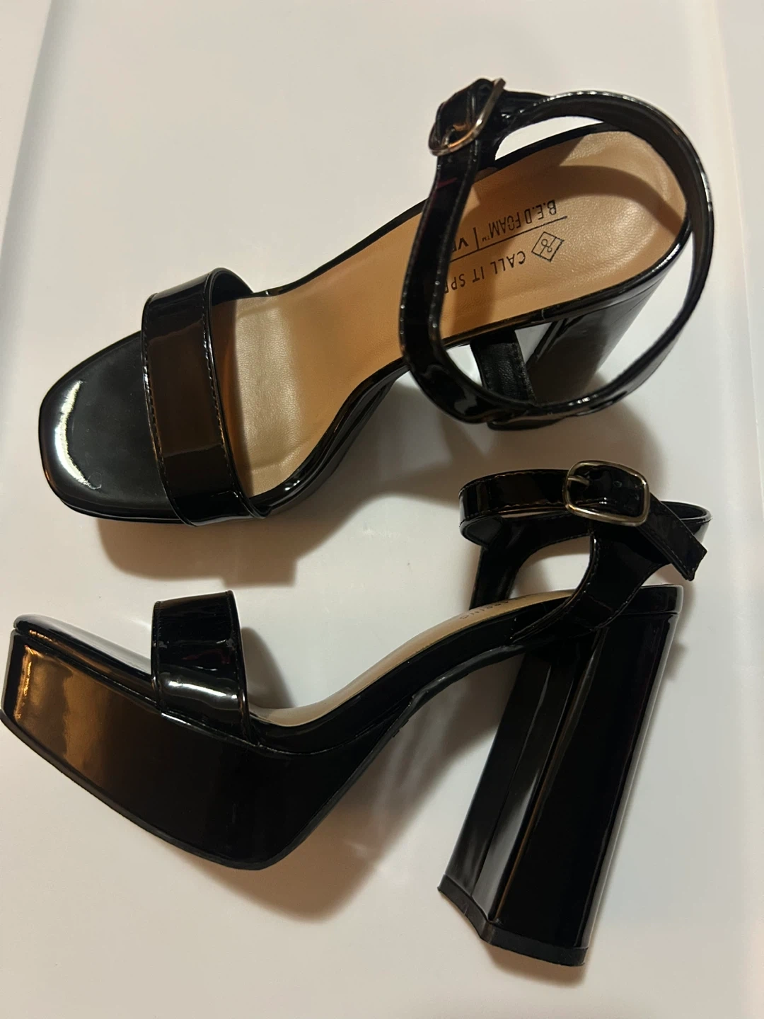 Selling a pair of Brand New Chic black platform heels an adjustable ankle strap from Call it Spring with. Features a bold block heel and a comfortable B.E.D. Foam insole. These stylish sandals are perfect for dressing up any outfit for a night out! Size US 6