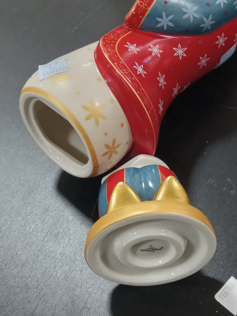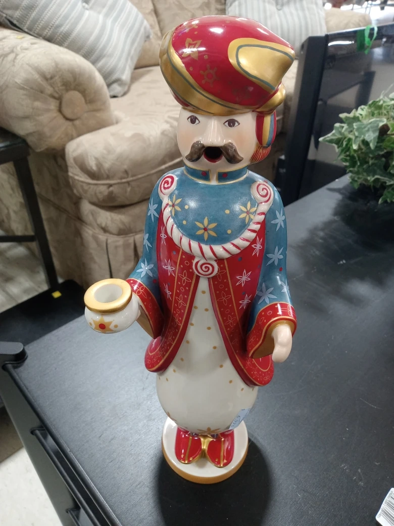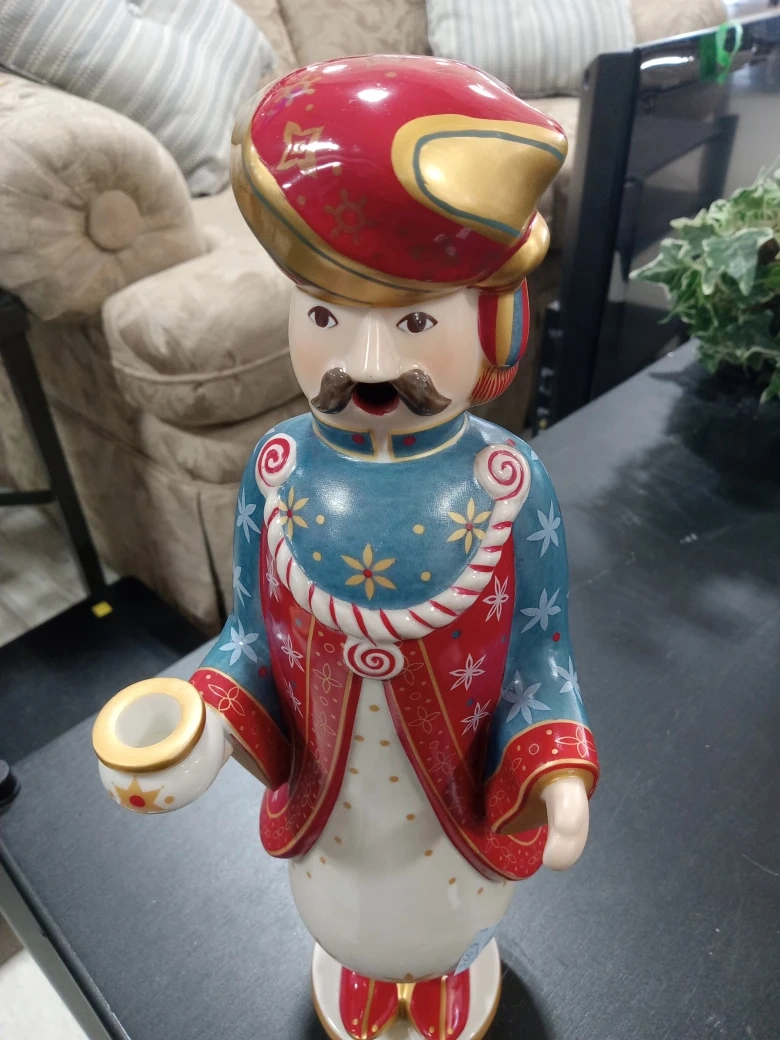 Villeroy & Boch nativity figure candle holder. Features a festive, colourful design. Ceramic material. Holds one taper candle.