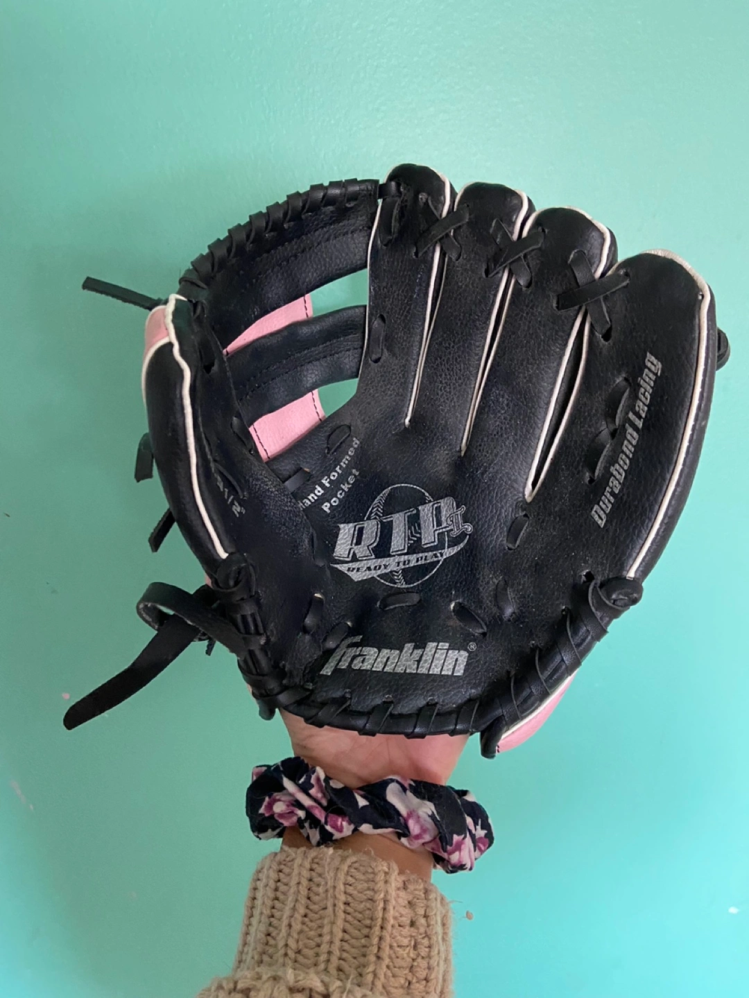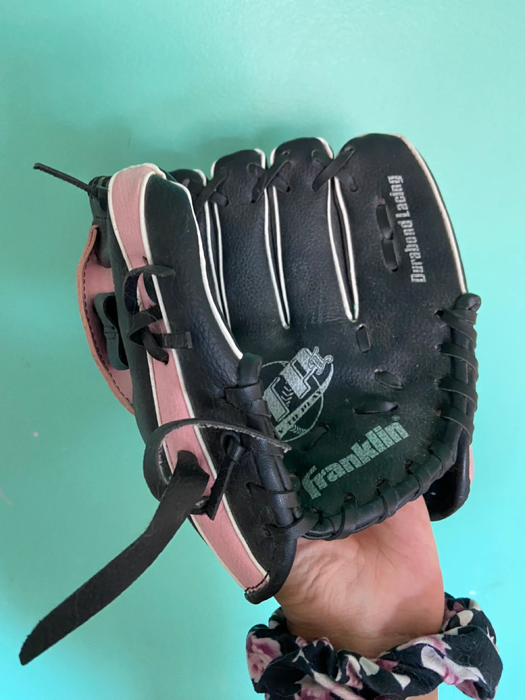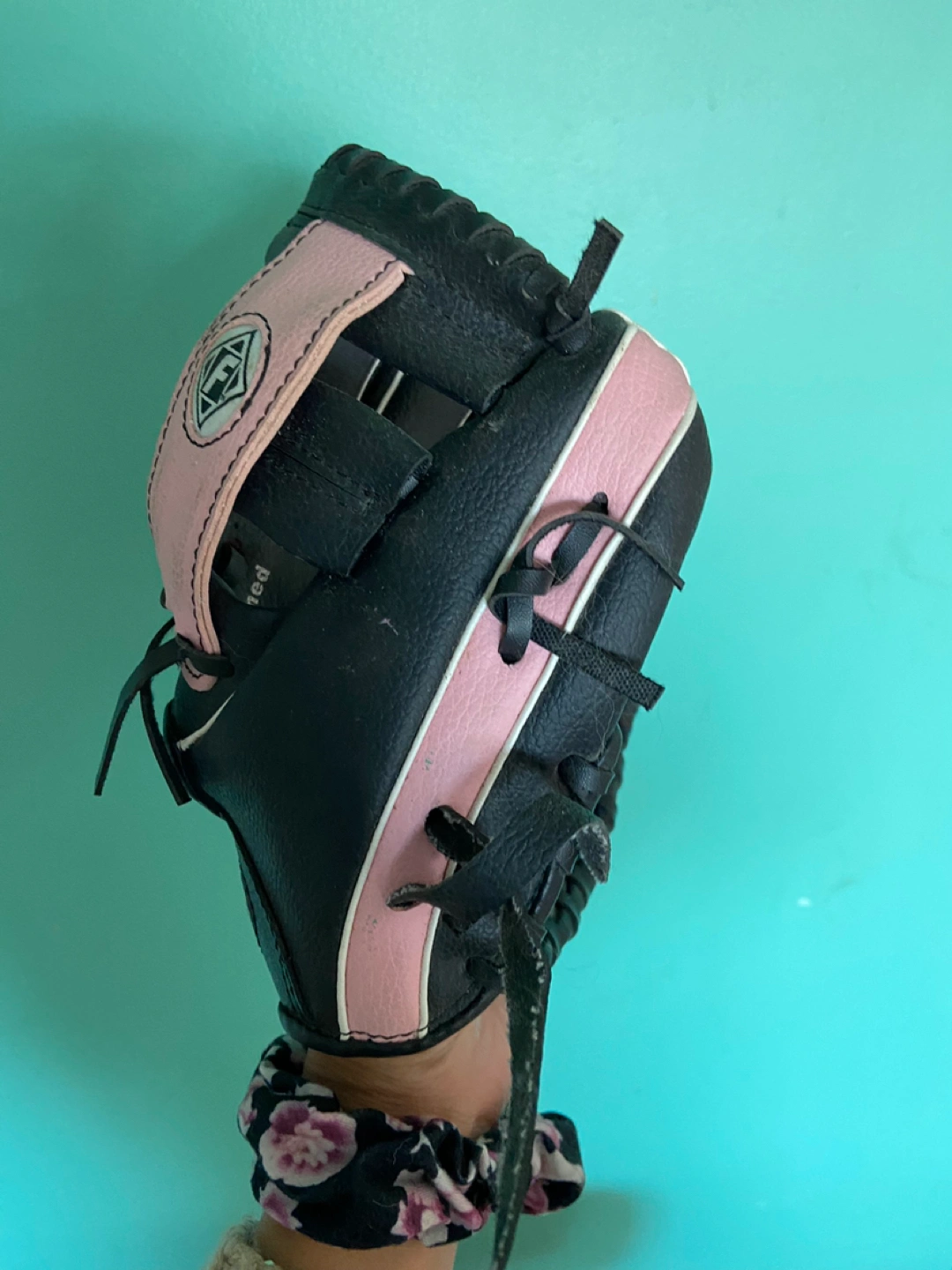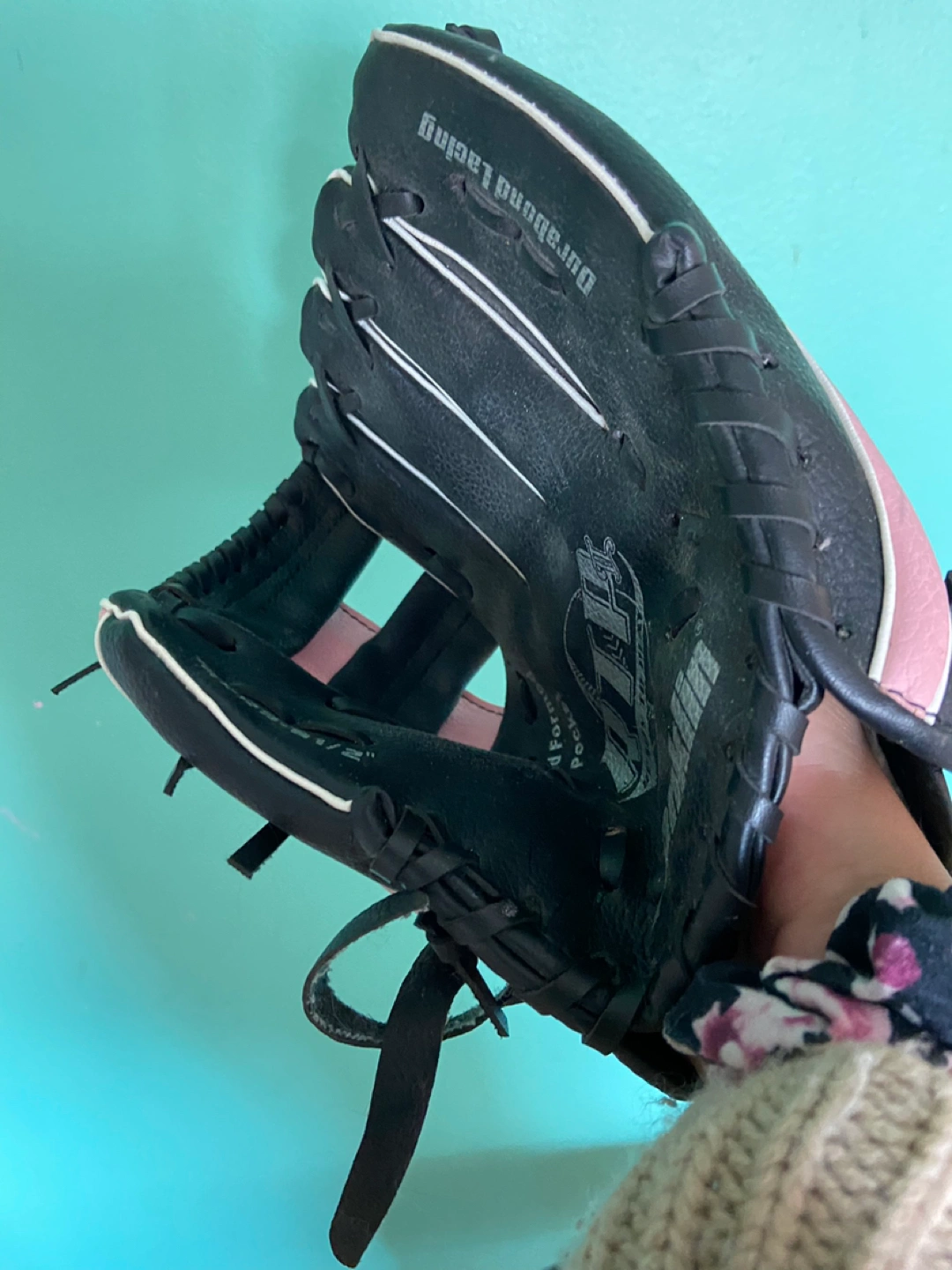 My daughter never played and she is now 11. This glove is so soft and flexible, shown on my hand for sizing. Will fit broad range of hand. It’s never been used. Only wear is from sitting on the shelf.