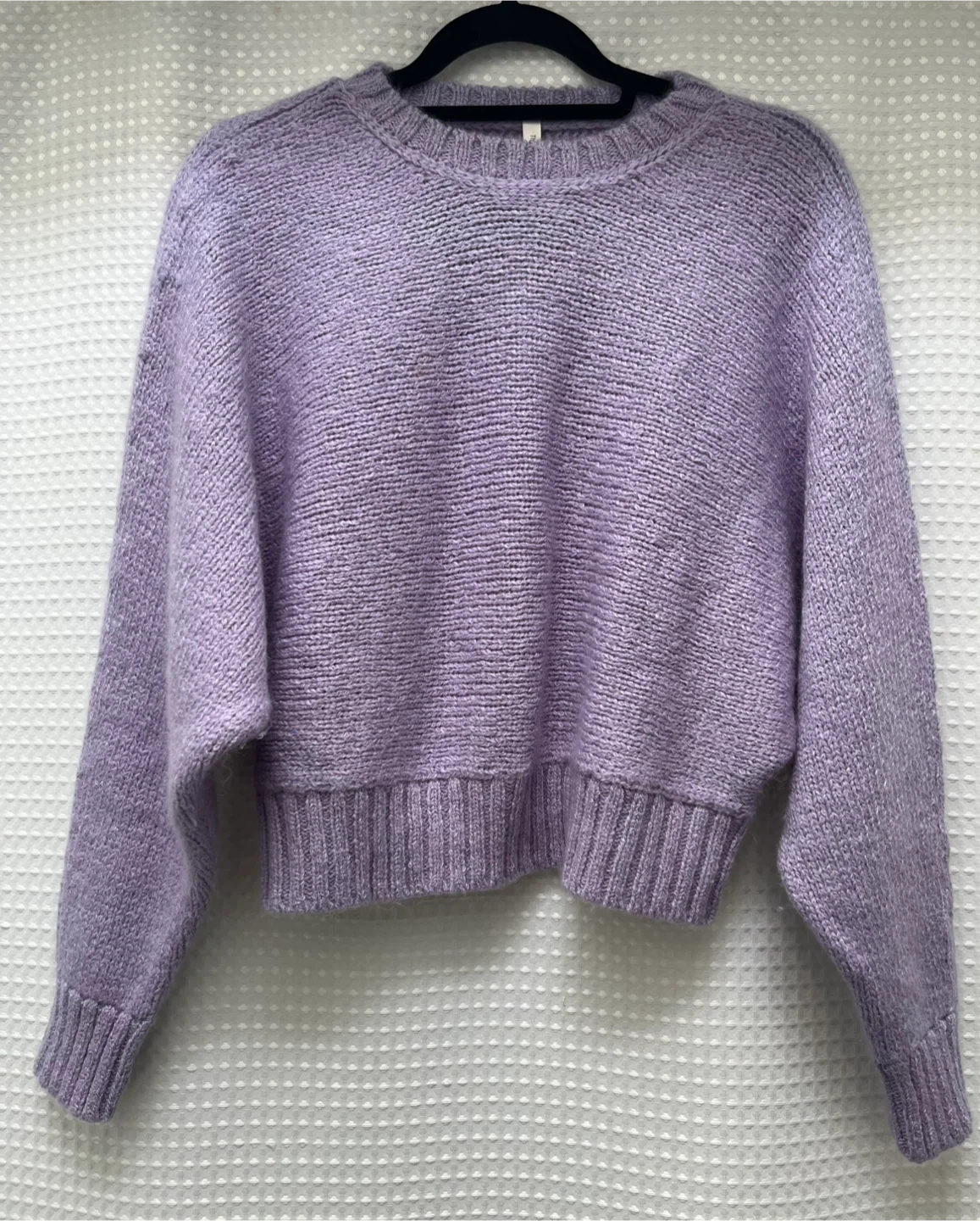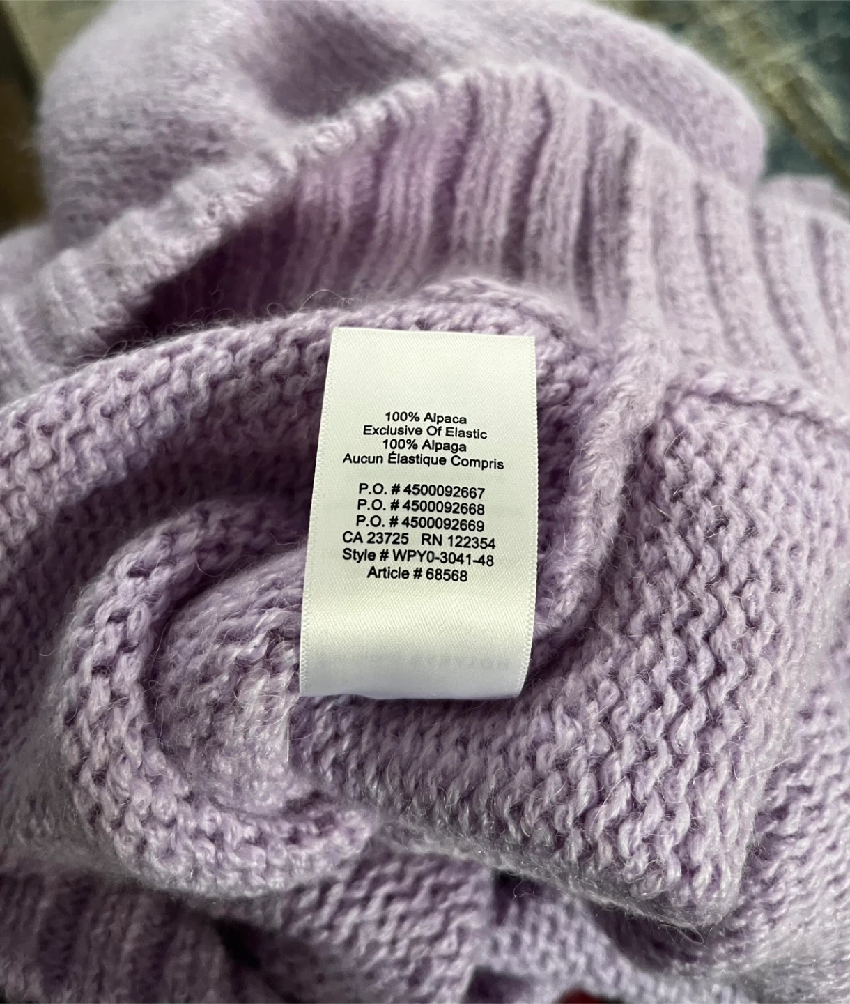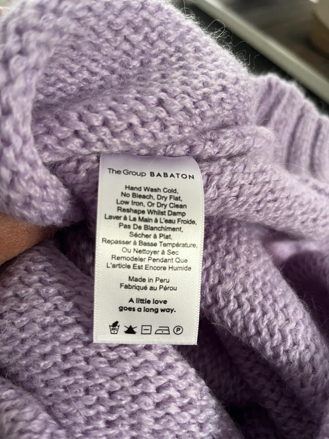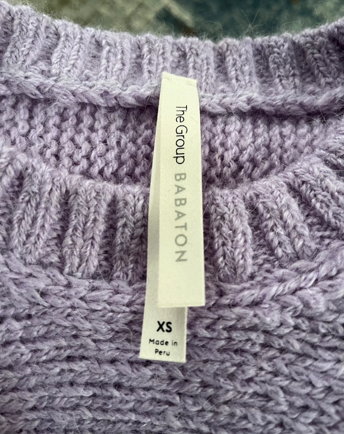 This is an Aritzia The Group Babaton sweater. It's 100% alpaca and made in Peru. Size is XS and oversized. Can fit Small or Medium too. Super soft and cozy feel!