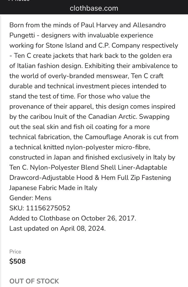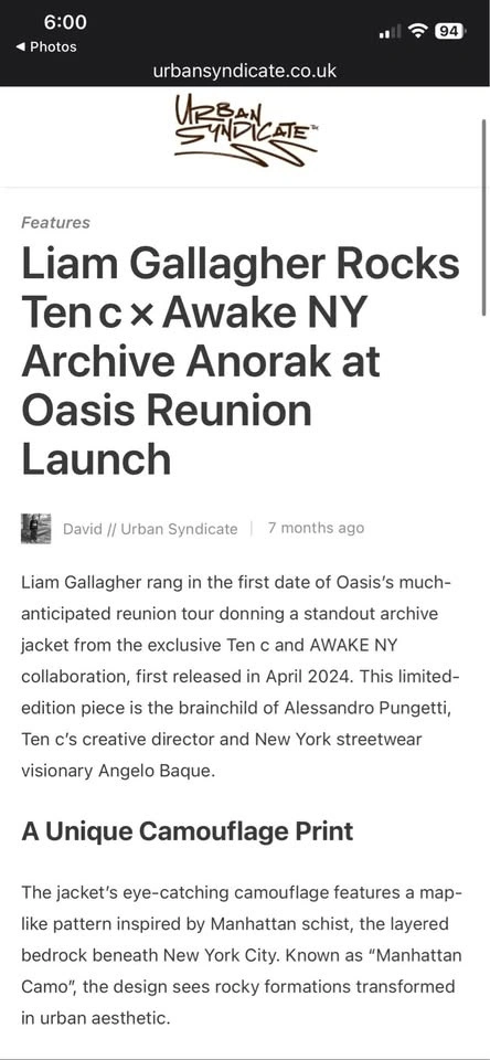 TEN C Anorak "Liam Gallagher Jacket" Parka Made In Italy