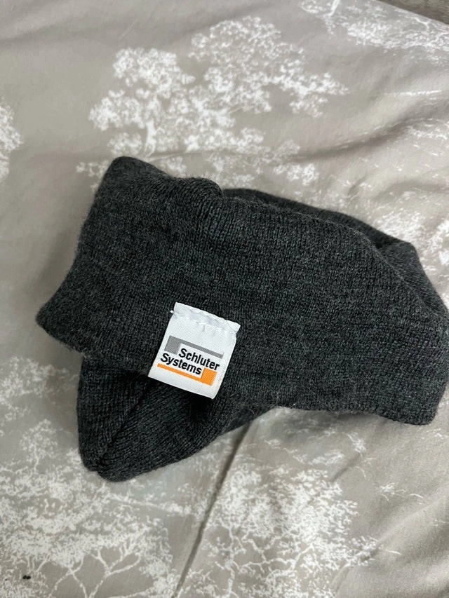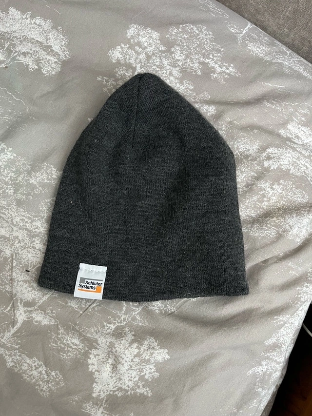 Keep your head warm with this used Schluter Systems beanie. It's in good condition, perfect for those chilly days on the job site or just kicking around town. This stylish beanie is ready for a new home. If the ad is still up, the beanie is still available – no need to ask!