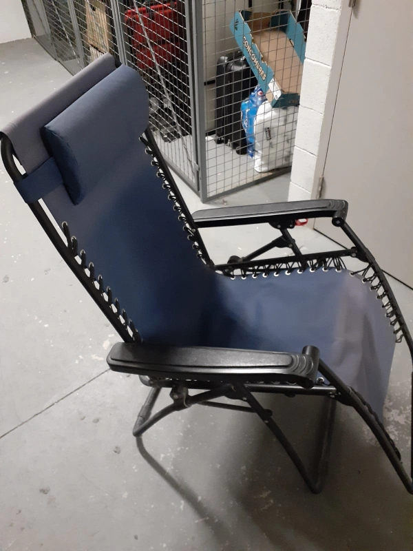 Relaxing zero gravity chair. Durable steel frame. Comfortable fabric. Headrest included. Folds for easy storage.