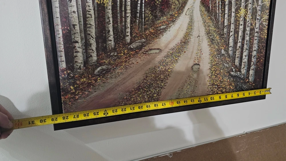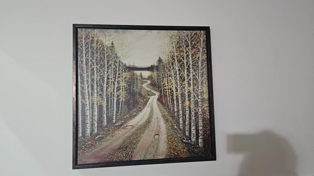 Selling a framed print of a birch tree forest scene. The frame measures approximately 30x30 inches. It's a lovely piece that would look great in any room!