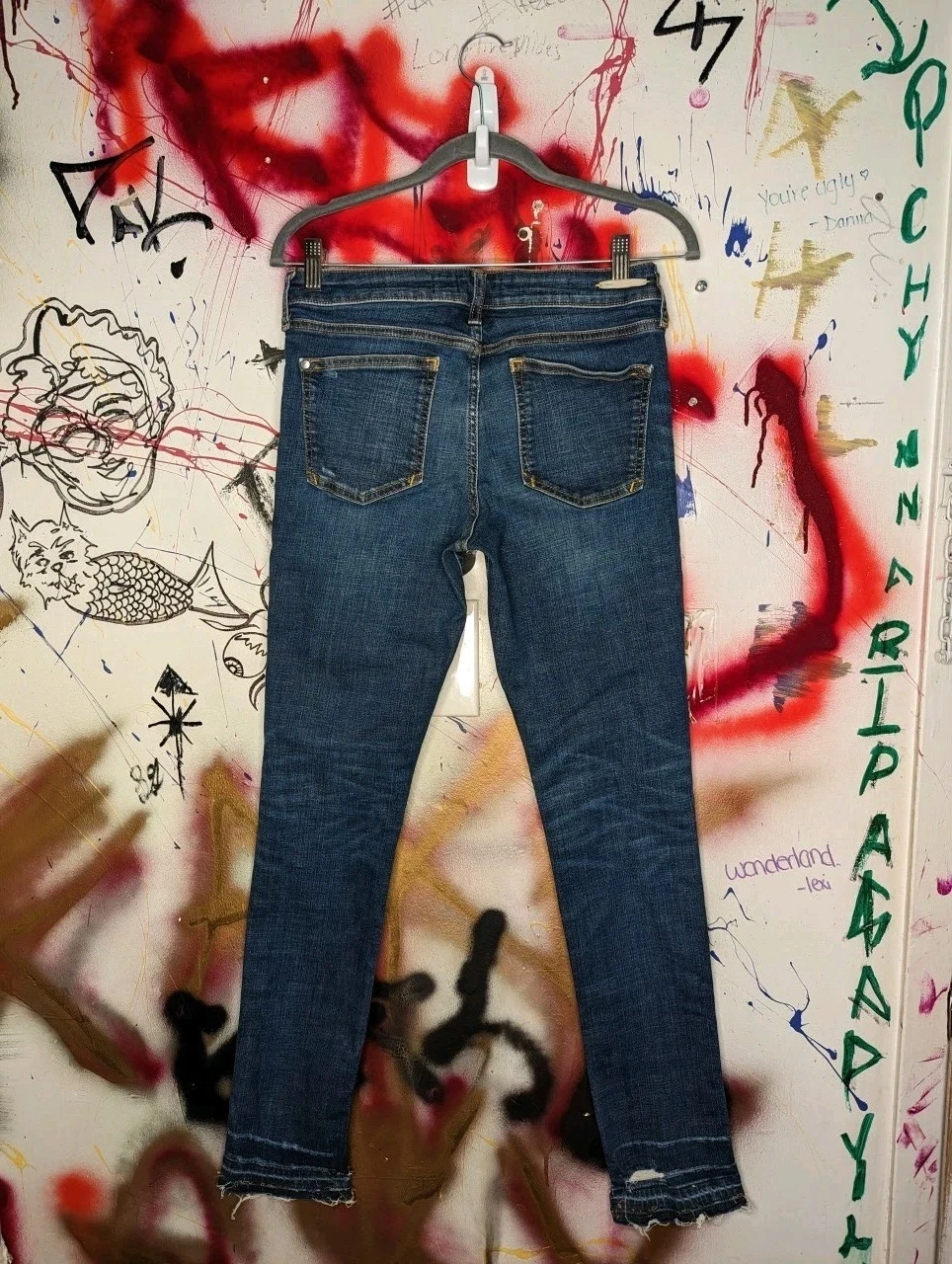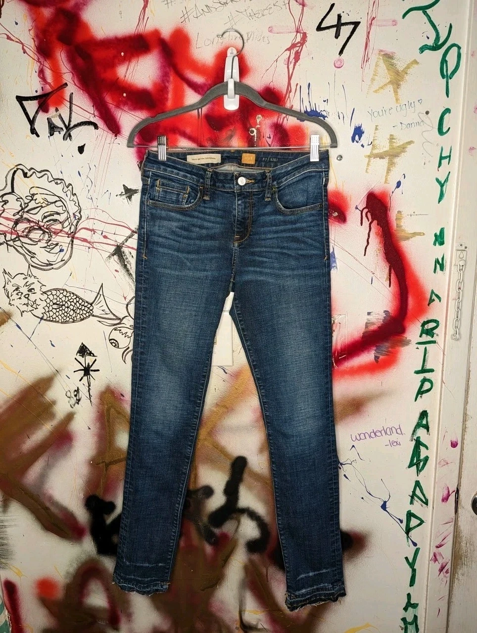 Pilcro Women's Skinny Jeans Blue Raw Hem Distressed Stretch 5-Po