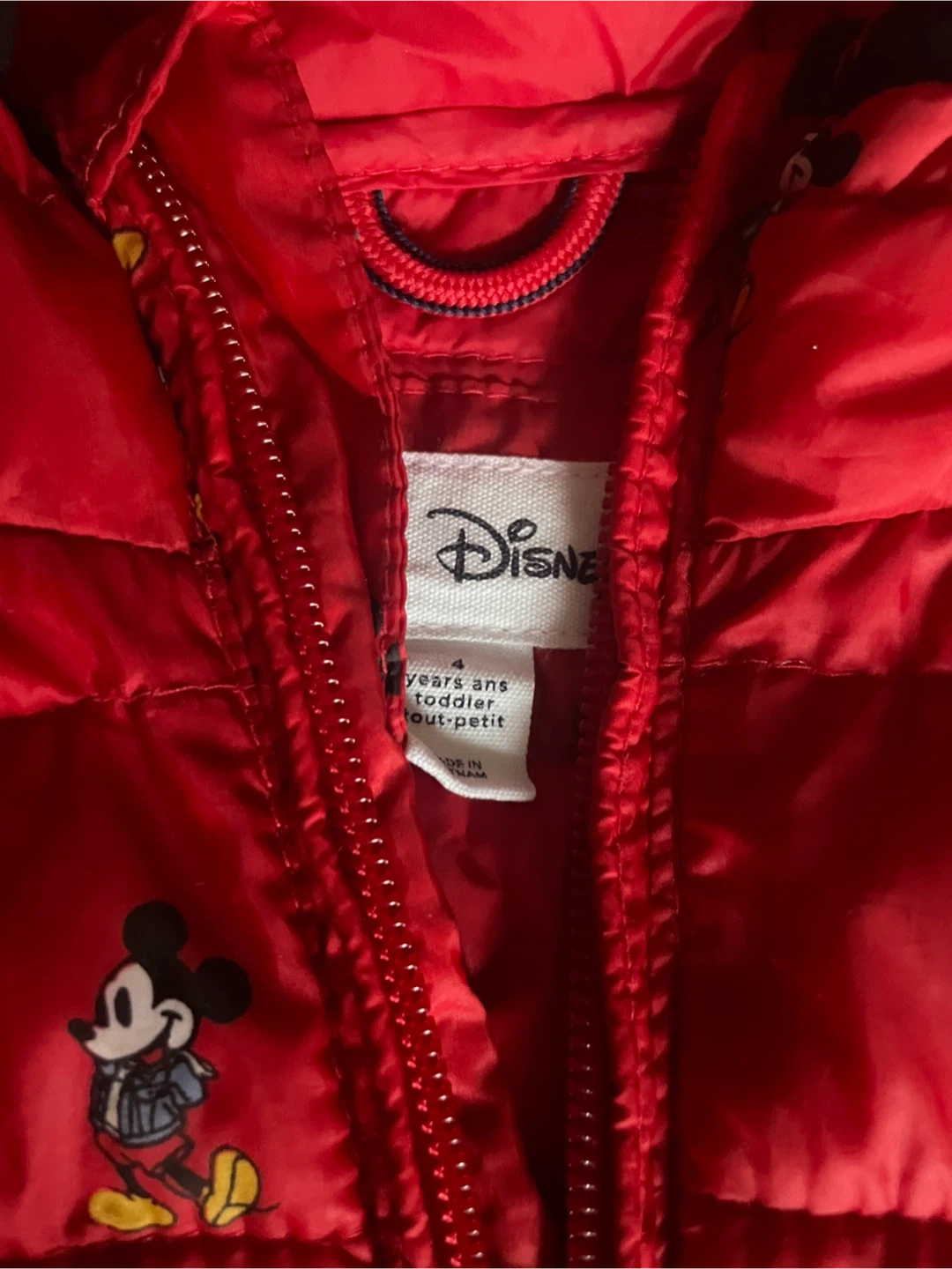 Keep your little one warm with this adorable Gap Disney puffer jacket! It's a bright red colour and features a Mickey Mouse design. Size is 4 years. Perfect for those chilly days!