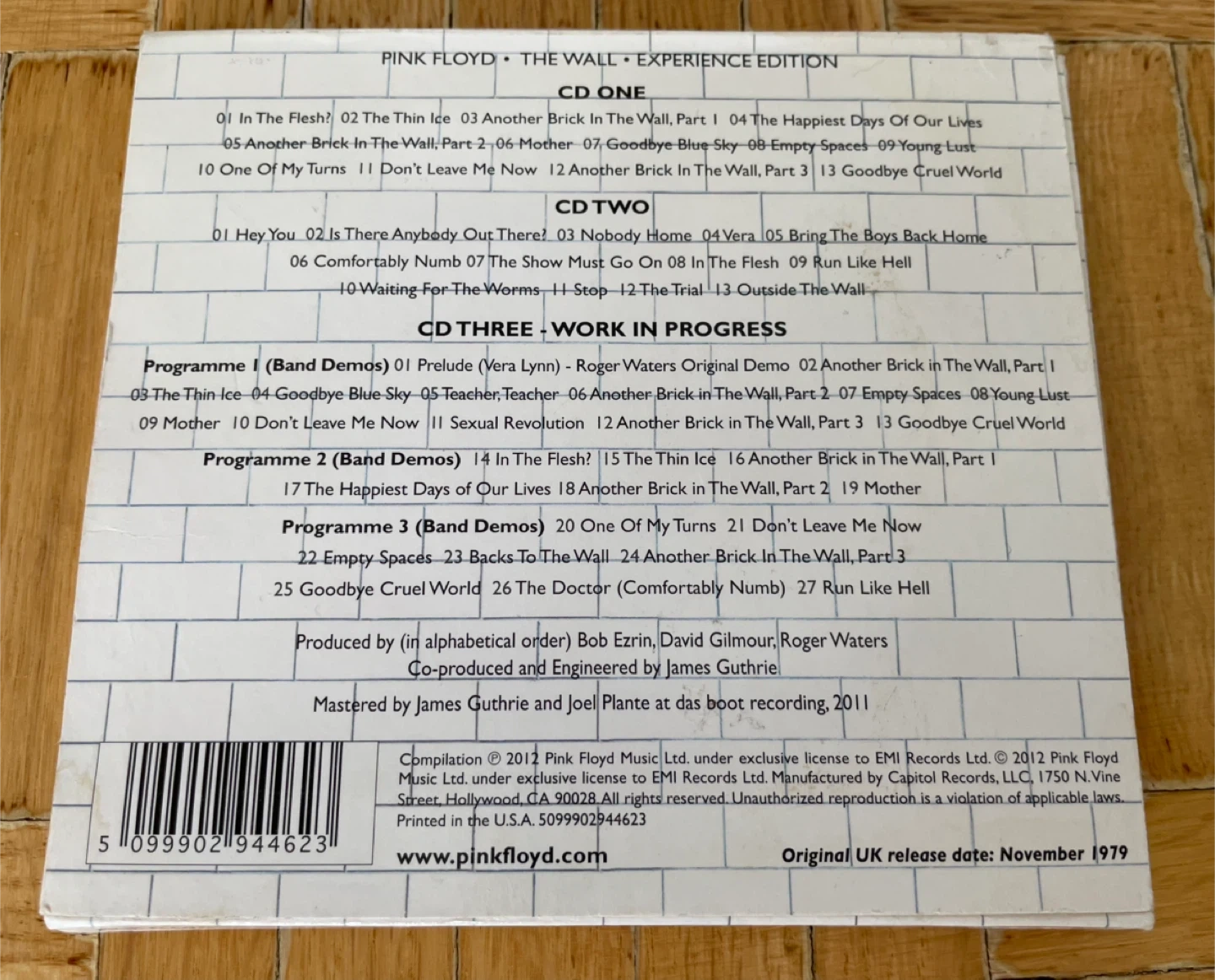 Very Rare, Pink Floyd The Wall 3 Cd Set. Outer Sleeve, Booklet, 3 CD’s. Classic Double Album, and Bonus Demos Cd.