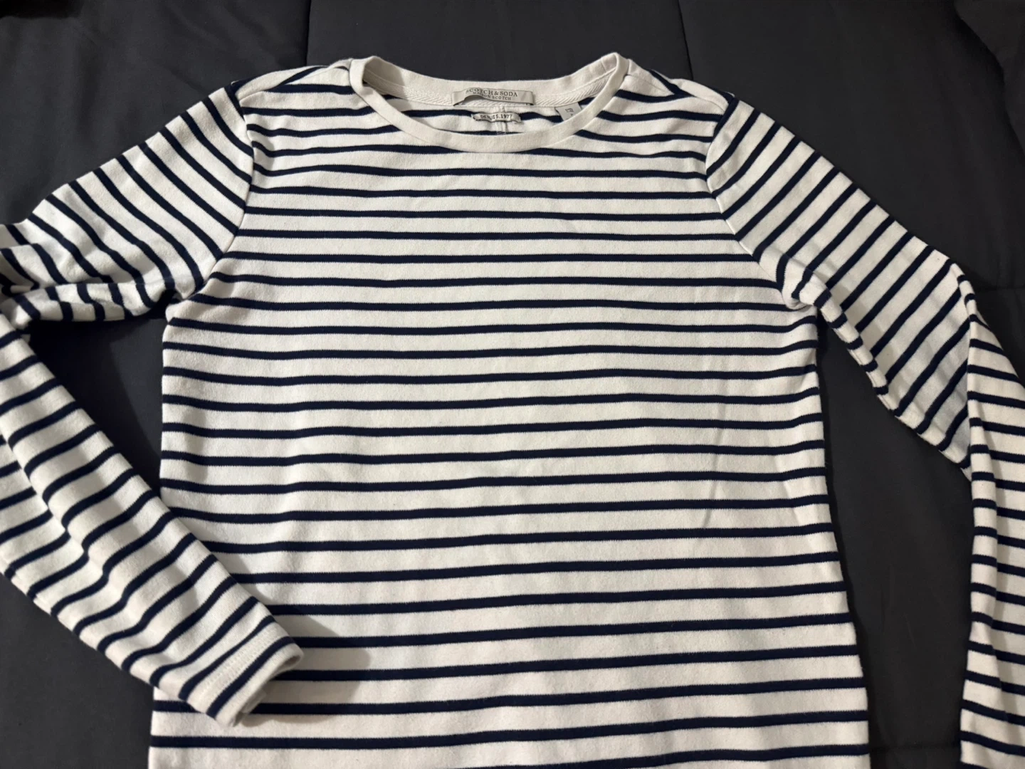 Selling a Scotch & Soda long sleeve top in a classic striped design! It's a size P (Petite). The shirt is in great condition and perfect for layering or wearing on its own