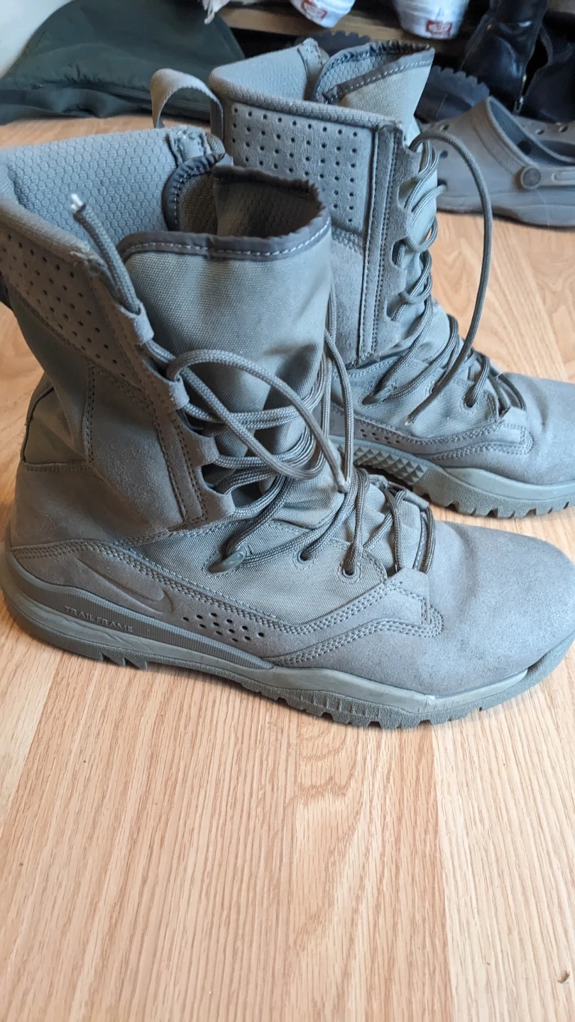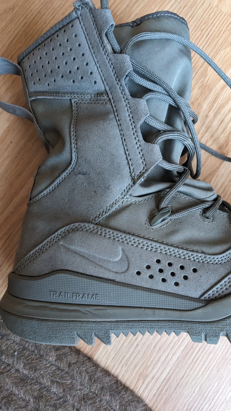 Selling a pair of Nike TrailFrame boots in olive green. They are in good condition and ready for your next adventure! Size 10.