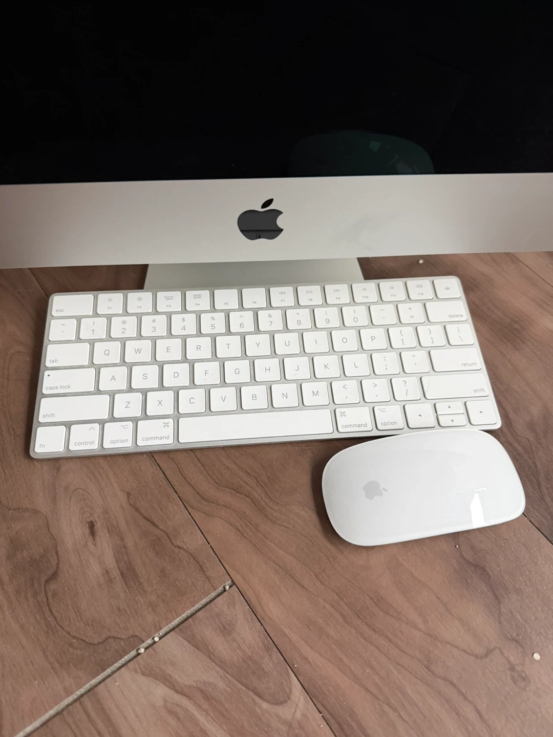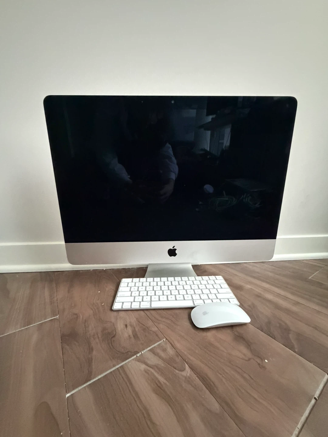 Apple iMac desktop computer. It comes with its original Apple wireless keyboard and Magic Mouse. The computer is in working condition and still updates.