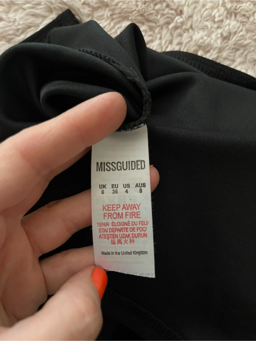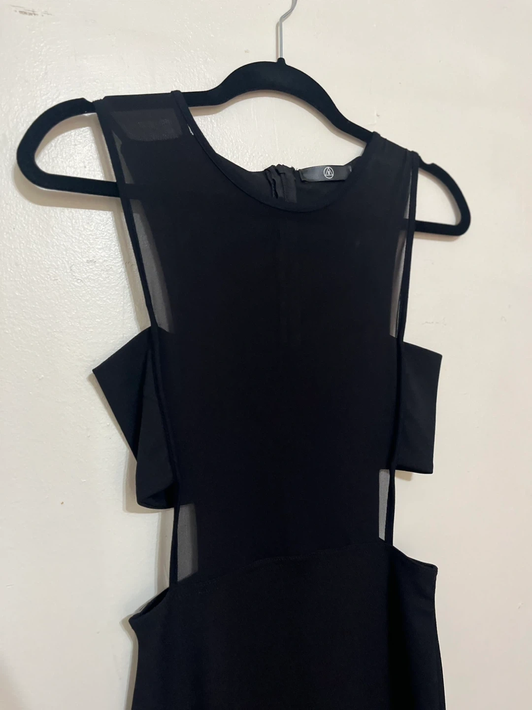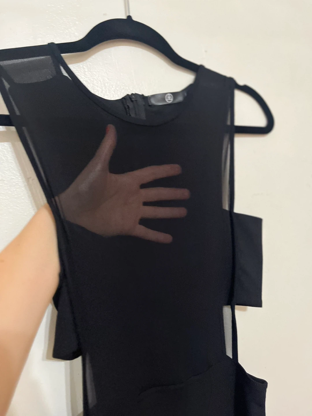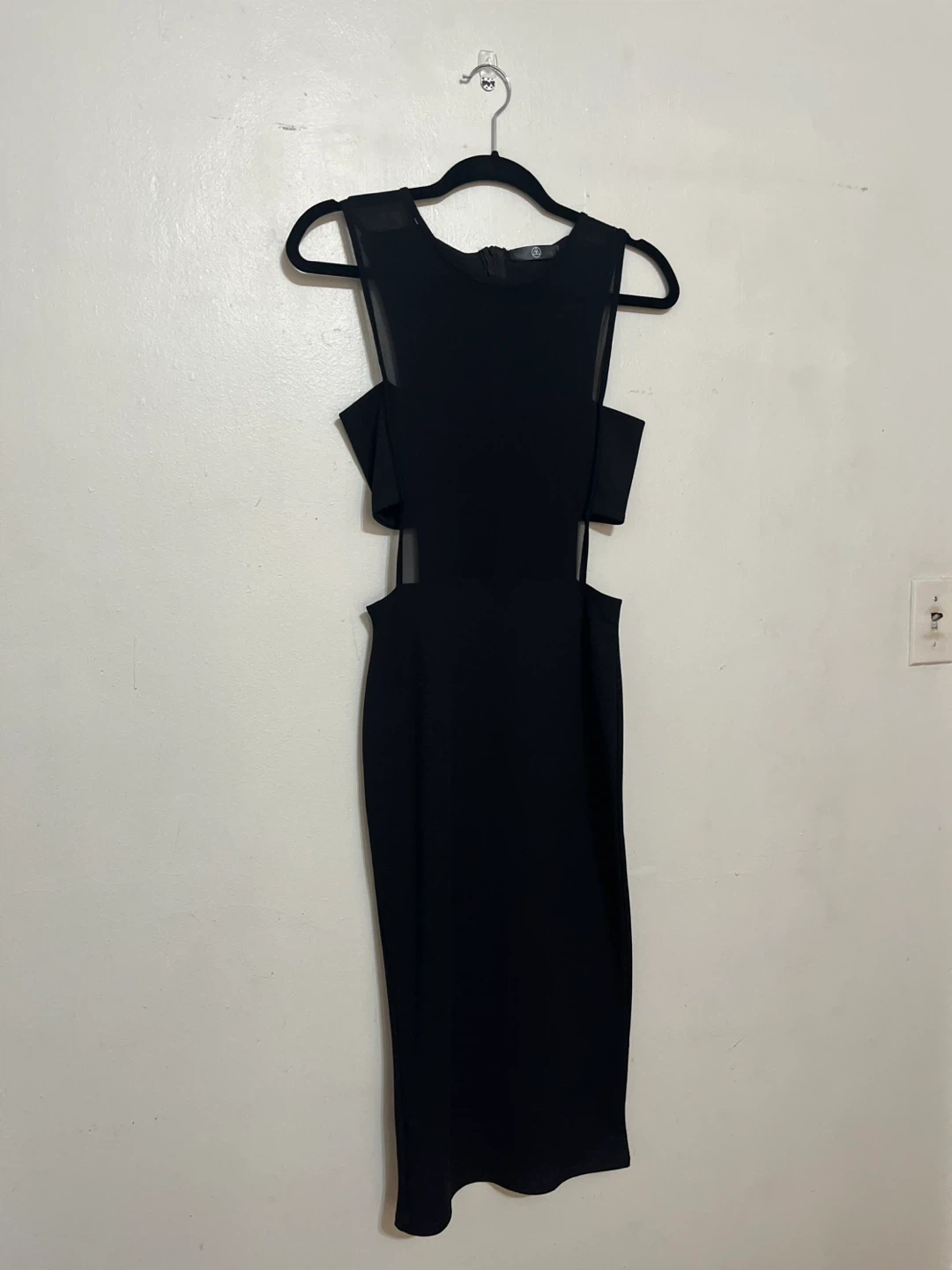 Selling a Missguided black dress in size US 4. It features a unique cut-out design, sheer in front. Never worn. Back hidden zipper.