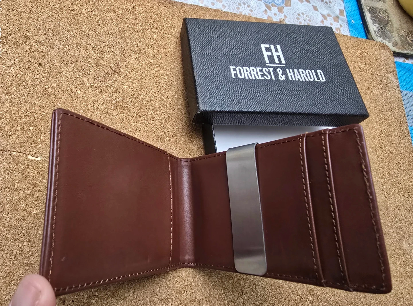 The Forrest & Harold Slim Money Clip Wallet in Top Grain Leather combines style and functionality in a sleek bifold design. Made from high-quality leather inside cognac, this wallet features a solid pattern with the brand logo accent. The money clip design allows for easy storage of cash and cards, making it a practical choice for men on the go. With a focus on money management, this wallet is both fashionable and efficient for everyday use.