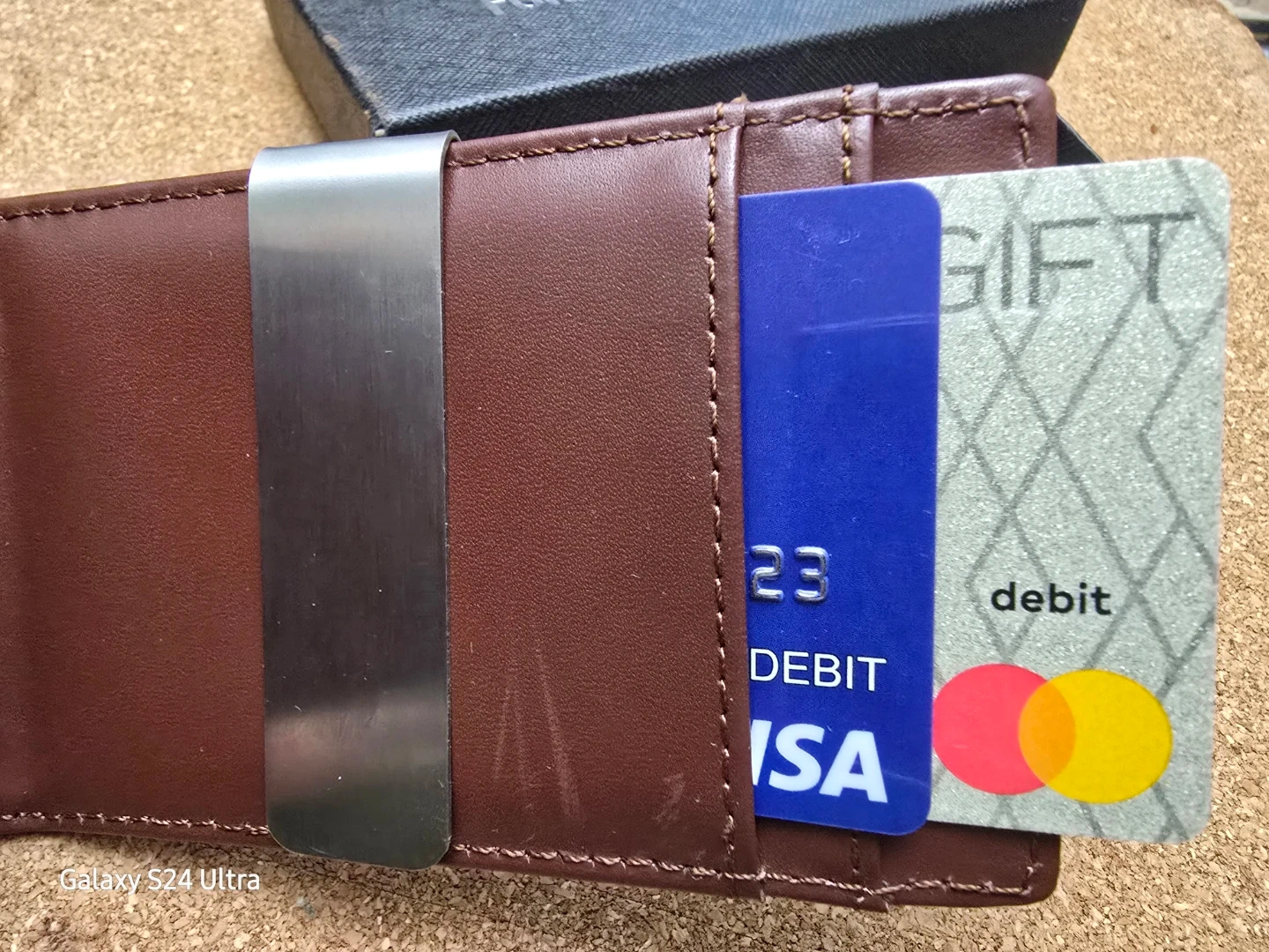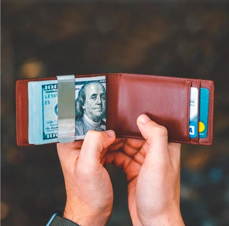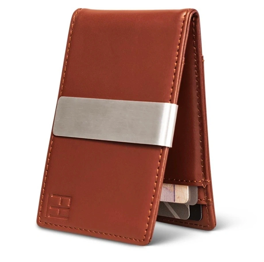 Material: Top-grain leather and brushed stainless steel detachable money clip