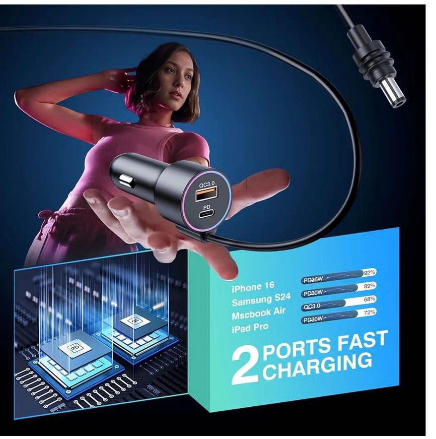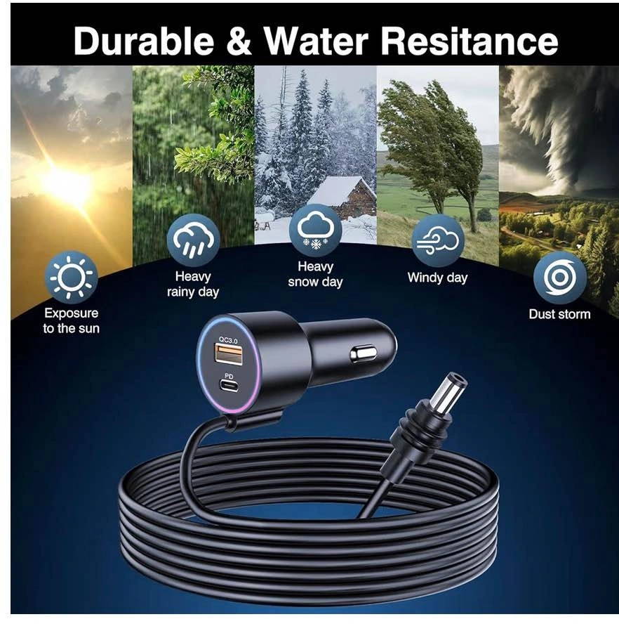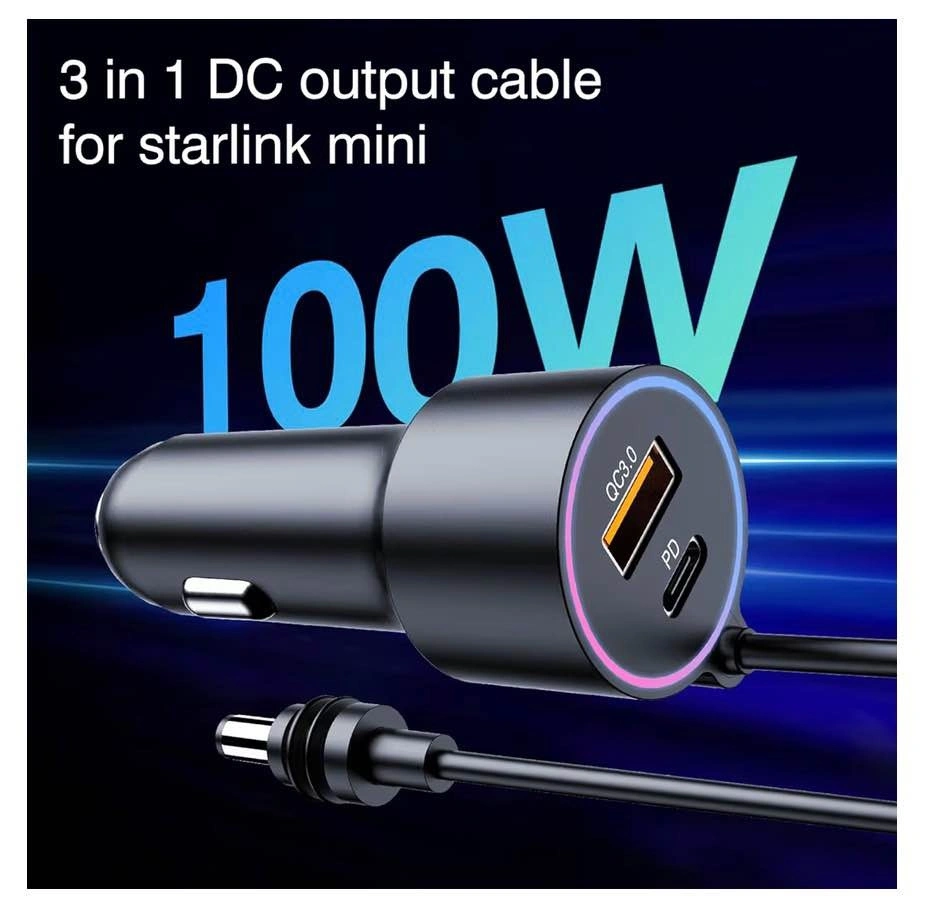 Includes a 16.4ft (5m) Starlink Mini cable and a 3-in-1 car charger. This DC power cable also functions as a cigarette lighter adapter (12V-48V) and supports QC 3.0 + PD 30W charging.