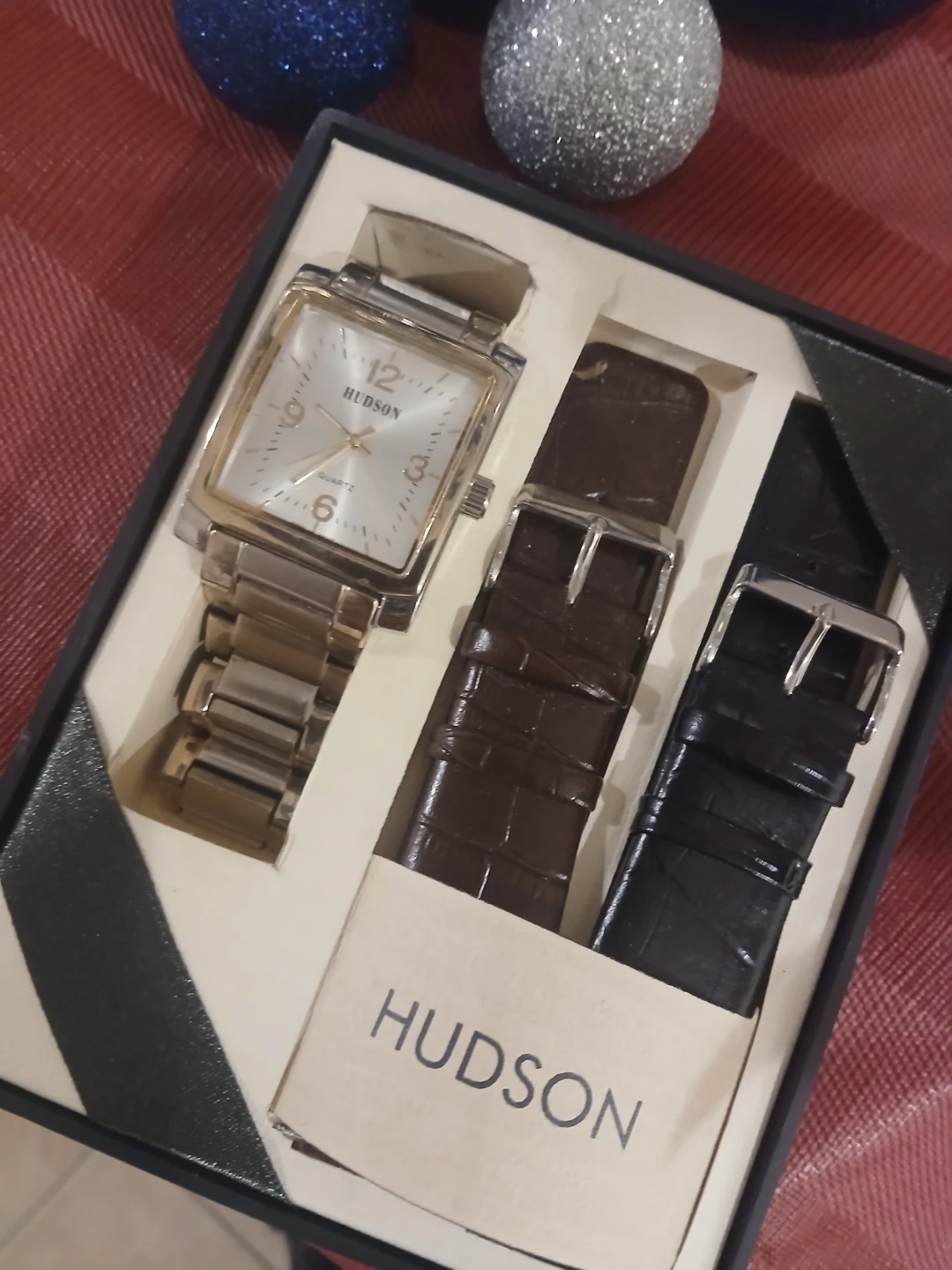 This Hudson watch features a sleek, square face and comes with two interchangeable bands, one metal and one leather, both in excellent brand new condition.