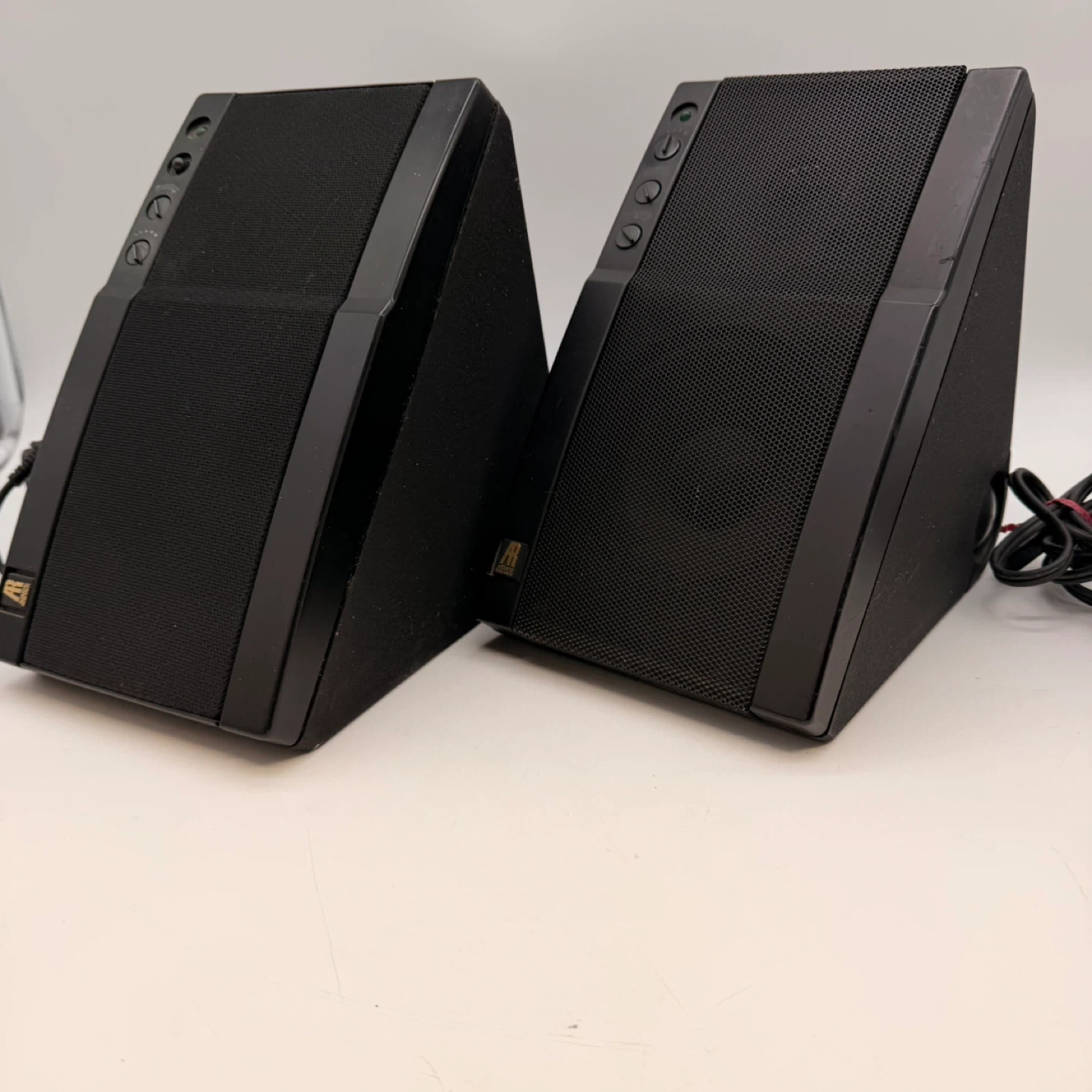 Tested and working well. Classic early-90s desktop/bookshelf speakers with built-in amplification.