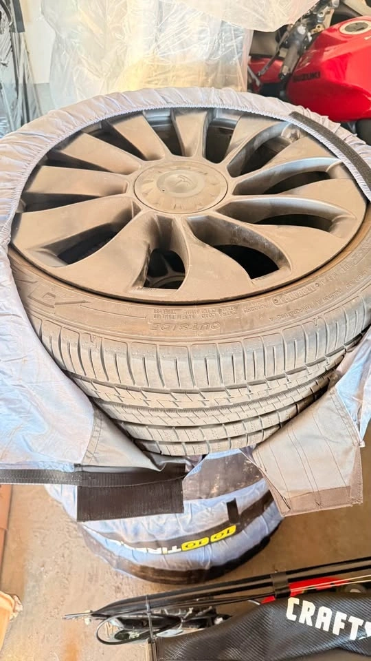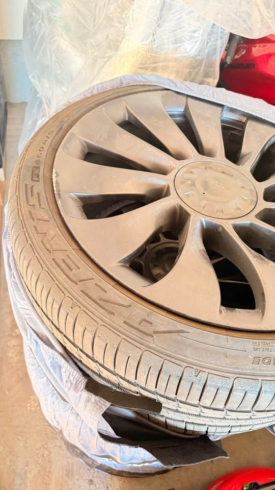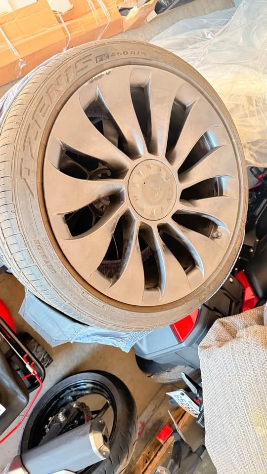 For sale: Complete set of 4 original OEM Tesla wheels and tires removed from a 2021 Tesla Model Y Performance. What’s included: 4x Genuine Tesla OEM Überturbine wheels (21”), 4x Fazen 460 AS All-Season tires, Balanced and ready to install. Wheel specifications (OEM): Front: 21 x 9.5J, Rear: 21 x 10.5J, Bolt pattern: 5x114.3, Center bore: 64.1 mm, Original Tesla Performance fitment. Tire specifications: Front tires: 255/35R21 – Fazen 460 AS, Rear tires: 275/35R21 – Fazen 460 AS, All-season performance tires, good condition. Fits Tesla Model Y Performance models from 2020 to 2024 (factory 21” setup). Not recommended for non-Performance Model Y trims due to rear wheel width. Wheels are original Tesla parts, normal cosmetic wear from use (no cracks or bends), tires have usable tread remaining. Upgraded to a different wheel setup. Local pickup preferred.