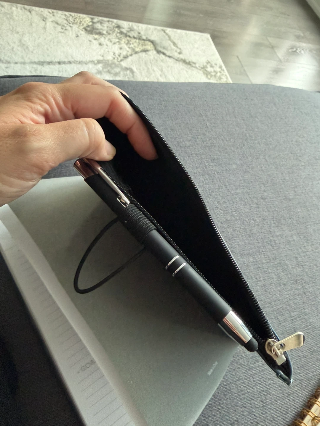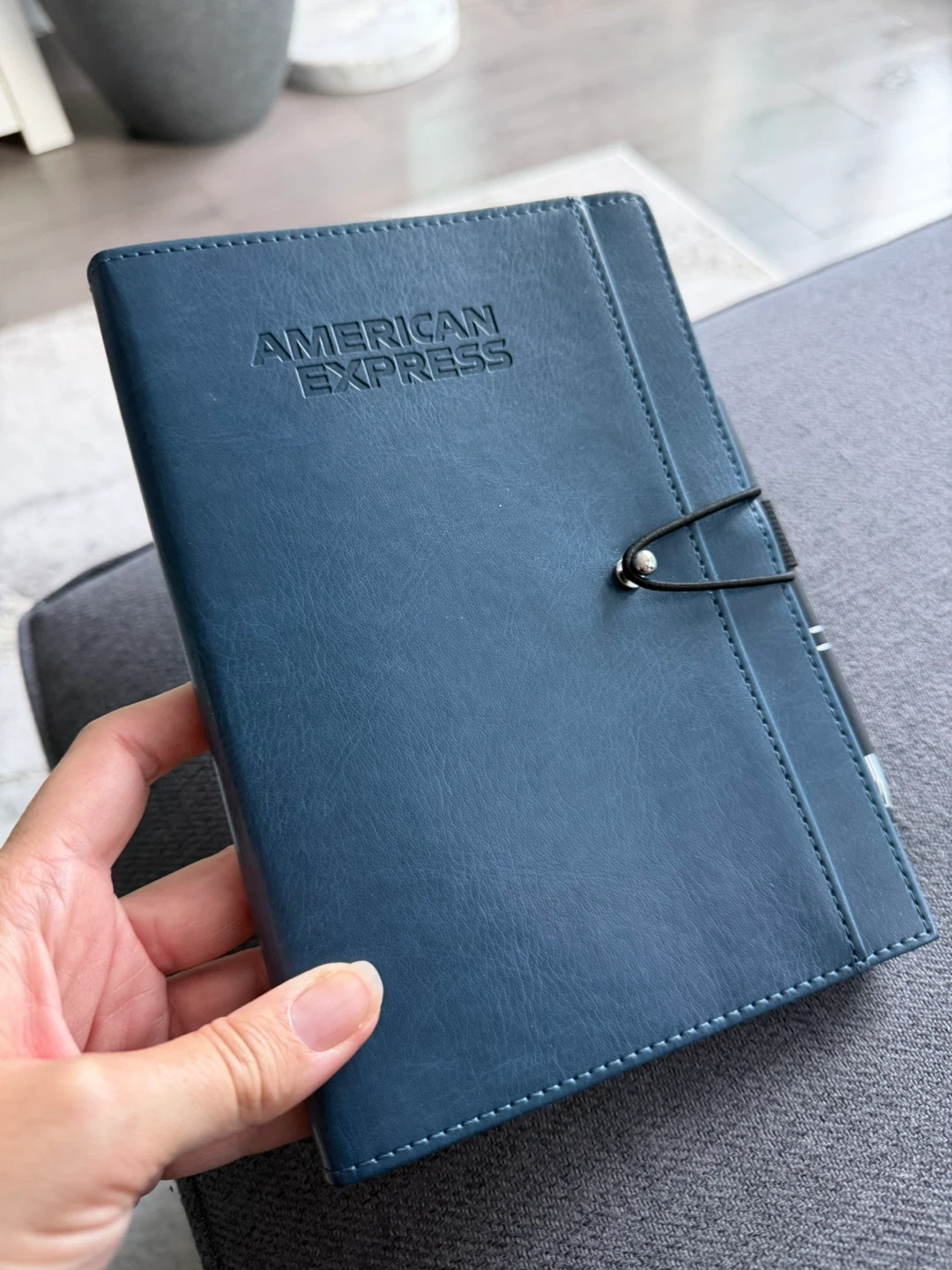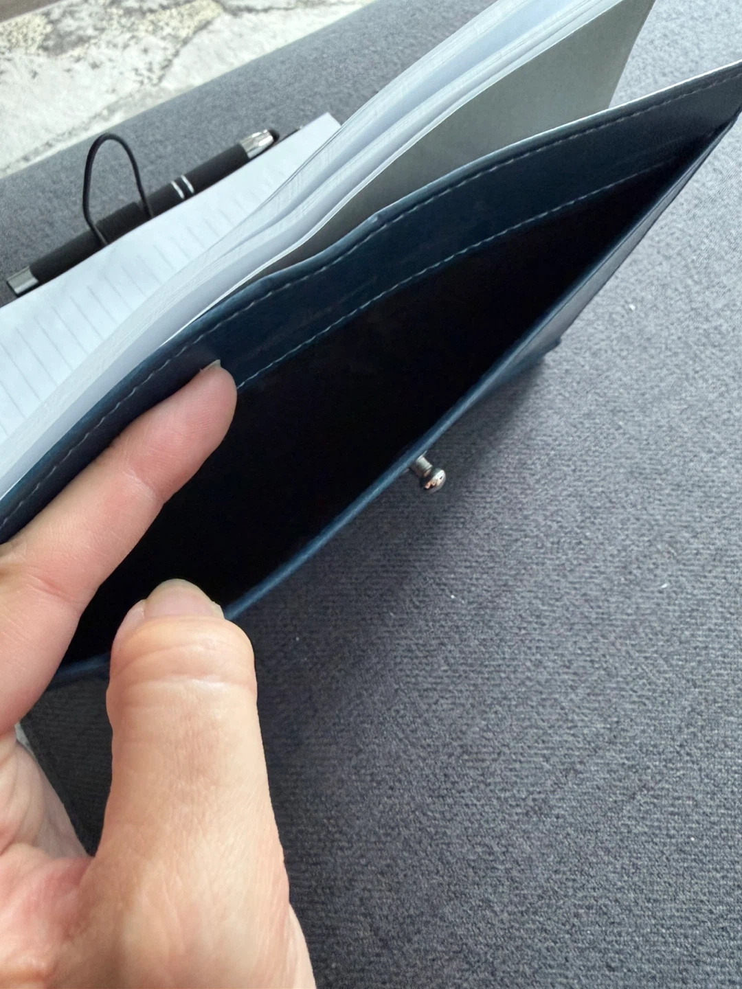 Selling a journal! It's a stylish blue leather and includes a pen. Inside, you'll find both lined paper and a calendar as well as 2 pockets to store extra papers - 1 is a sleeve and the other has a zipper