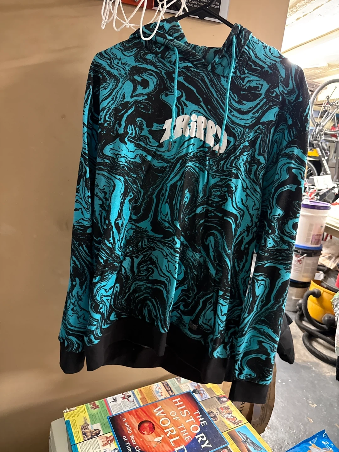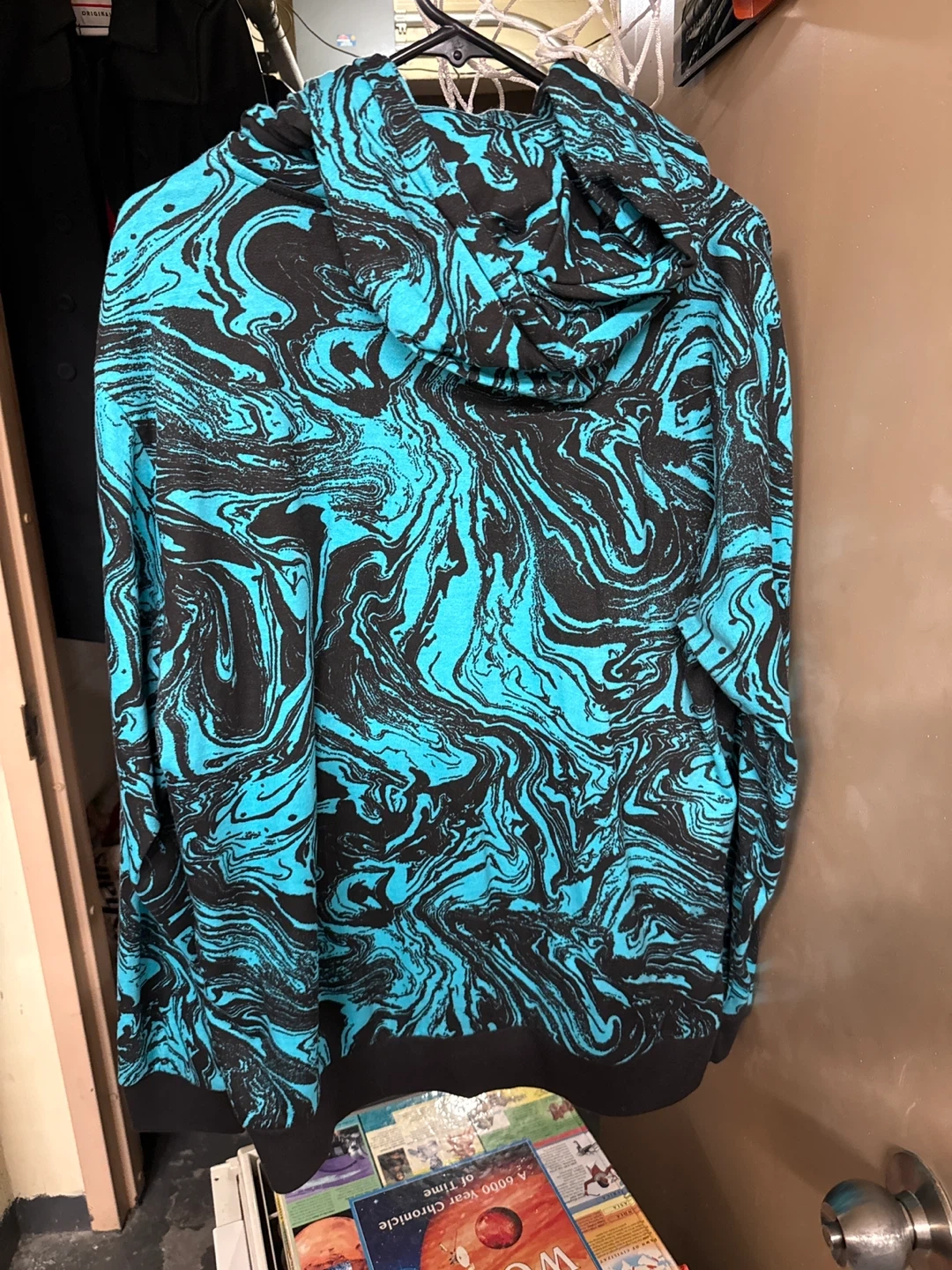 Selling a Navy Yard hoodie with a cool swirl print in shades of blue and black. It's a size L and in great condition. Perfect for adding a pop of color to your wardrobe!