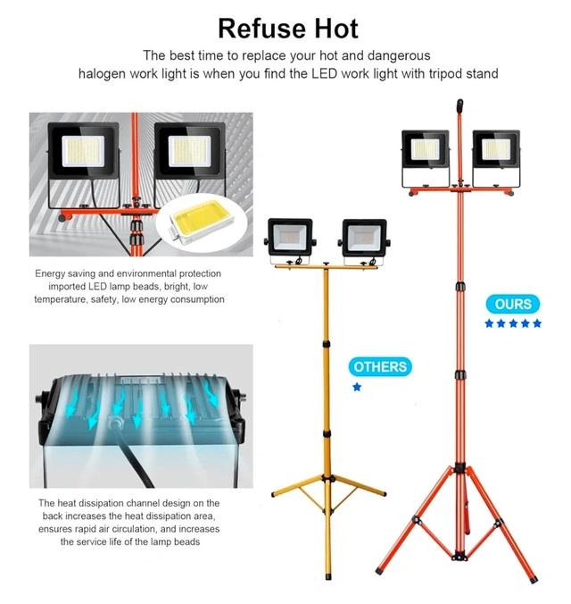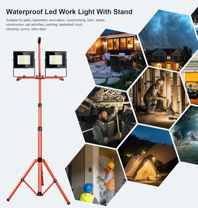 Durability of all-metal bracket:made of high-strength imported stainless steel, making it sturdy, stable and not shaking, professional orange paint coating, multiple durable protection, making the led work light not only suitable for construction site lighting, but also suitable for outdoor camping And emergency lighting