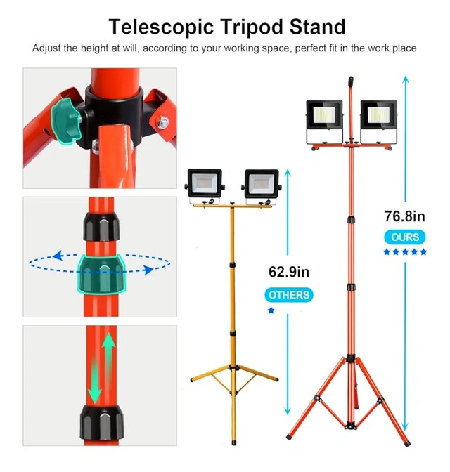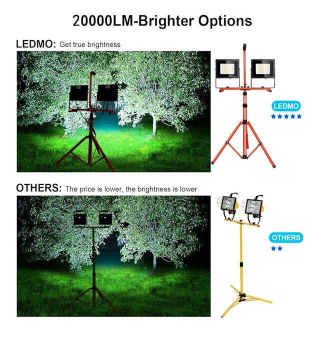 Higher brightness: LED work light stand with 20,000LM ultra-high brightness, which can meet 99% of the lighting site needs