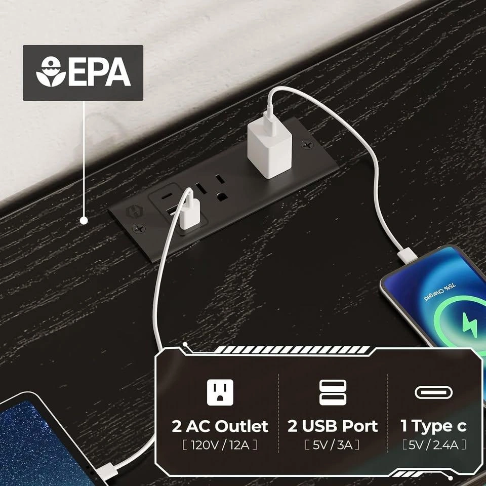 Rolanstar Dresser with Power Outlets and LED Lights