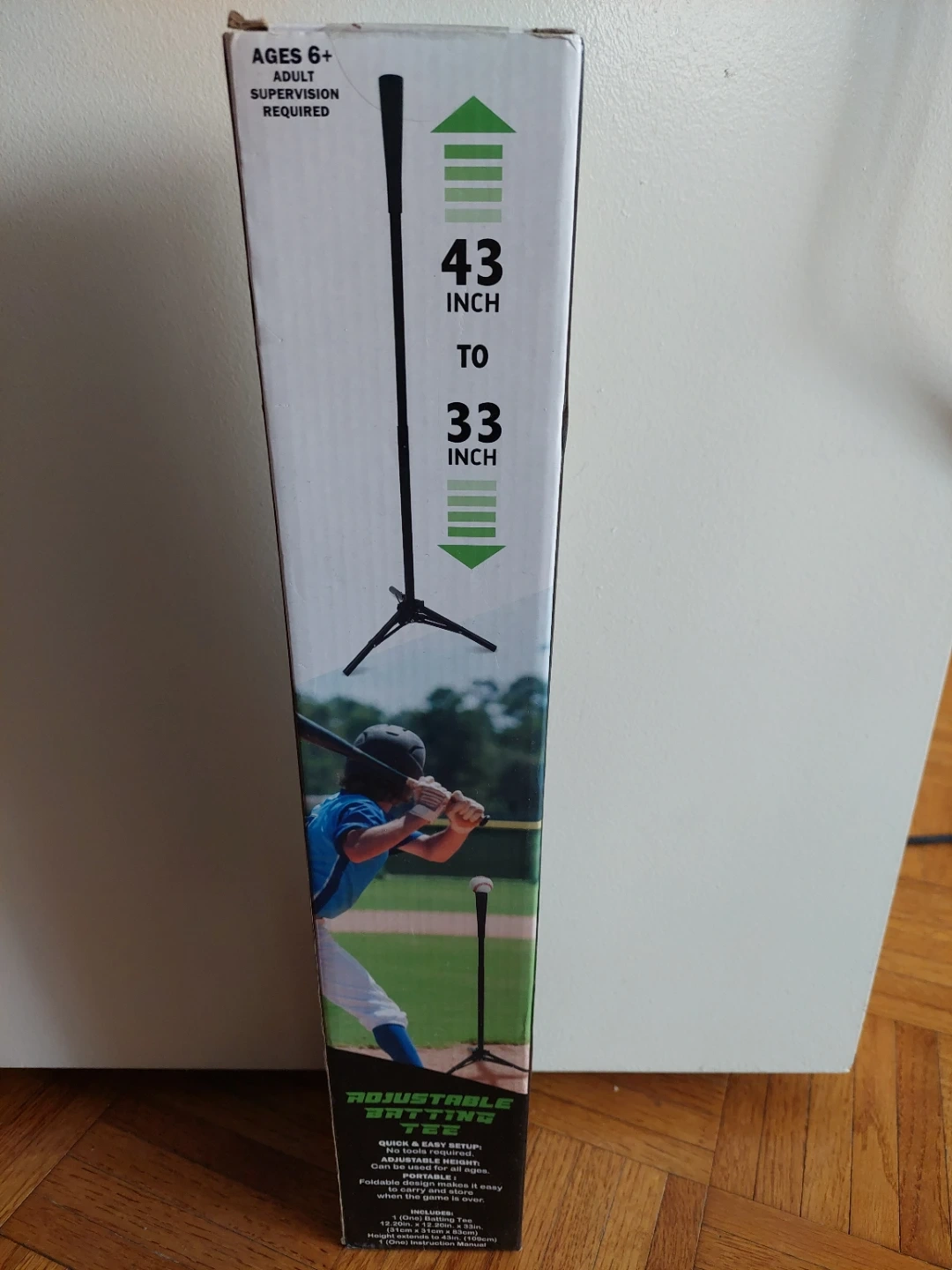 This adjustable batting tee is perfect for kids ages 6 and up! It's quick and easy to set up, no tools required. The height is adjustable from 33 to 43 inches, so it can be used for all ages. Plus, the foldable design makes it easy to carry and store when the game is over