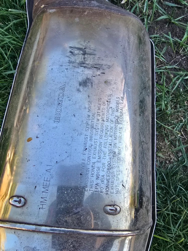 Selling a used Honda motorcycle exhaust system. It has some wear and tear, but is still functional. The model number is HM.MEE.A1. It meets EPA noise emission requirements for the following motorcycles: HONMEE0800. Please check the photos for condition