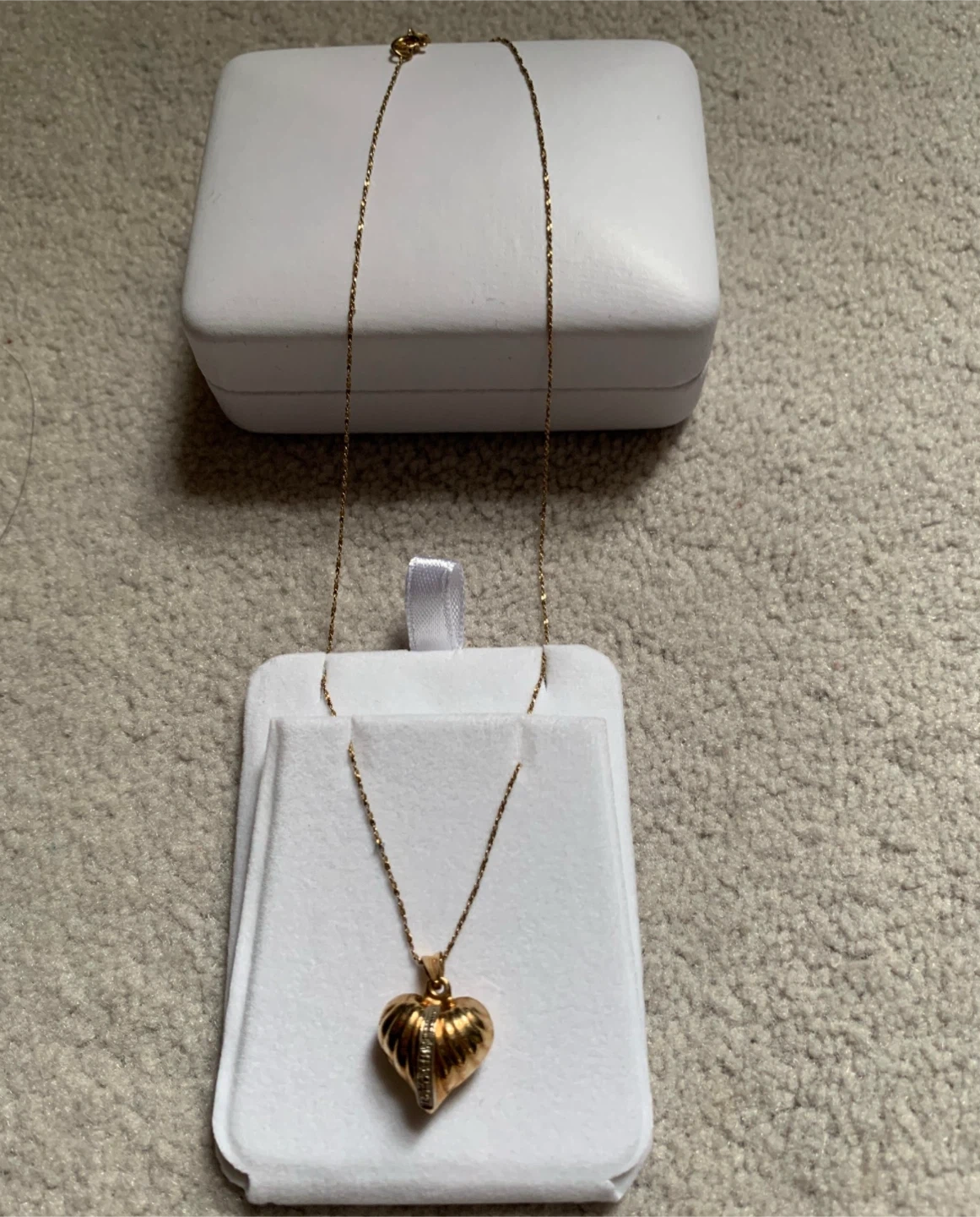 Authentic Timeless elegance with exquisite Mint Clean Puffed Heart Pendant, crafted in radiant 10K Yellow gold (stamped) adorned with delicate diamonds.