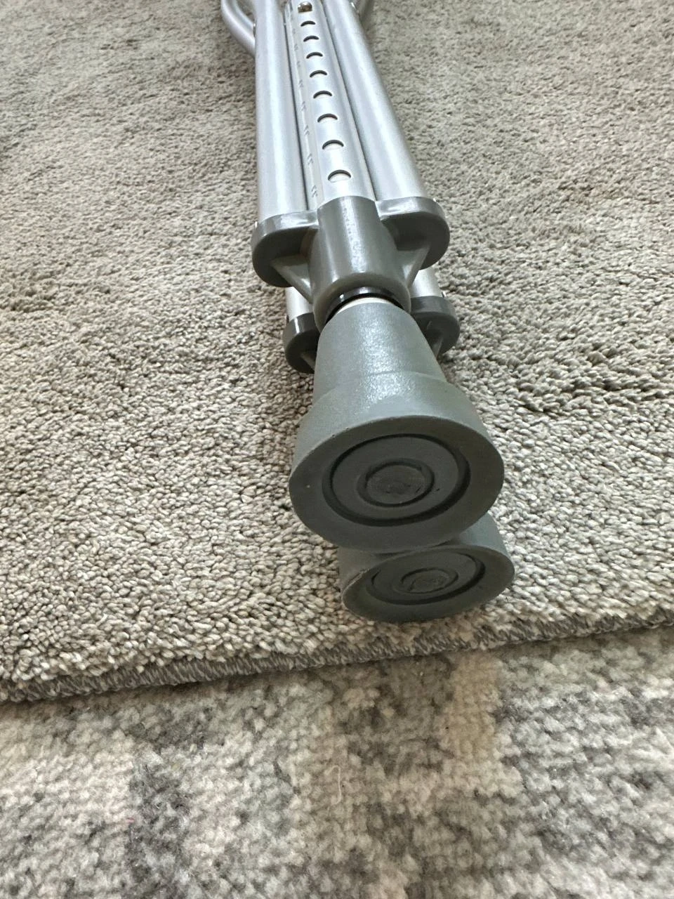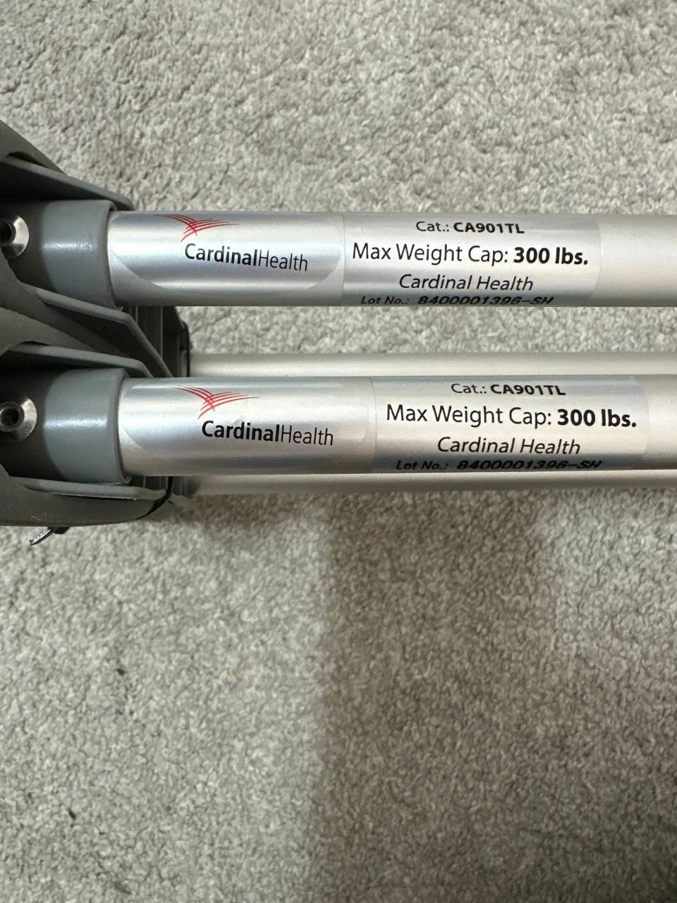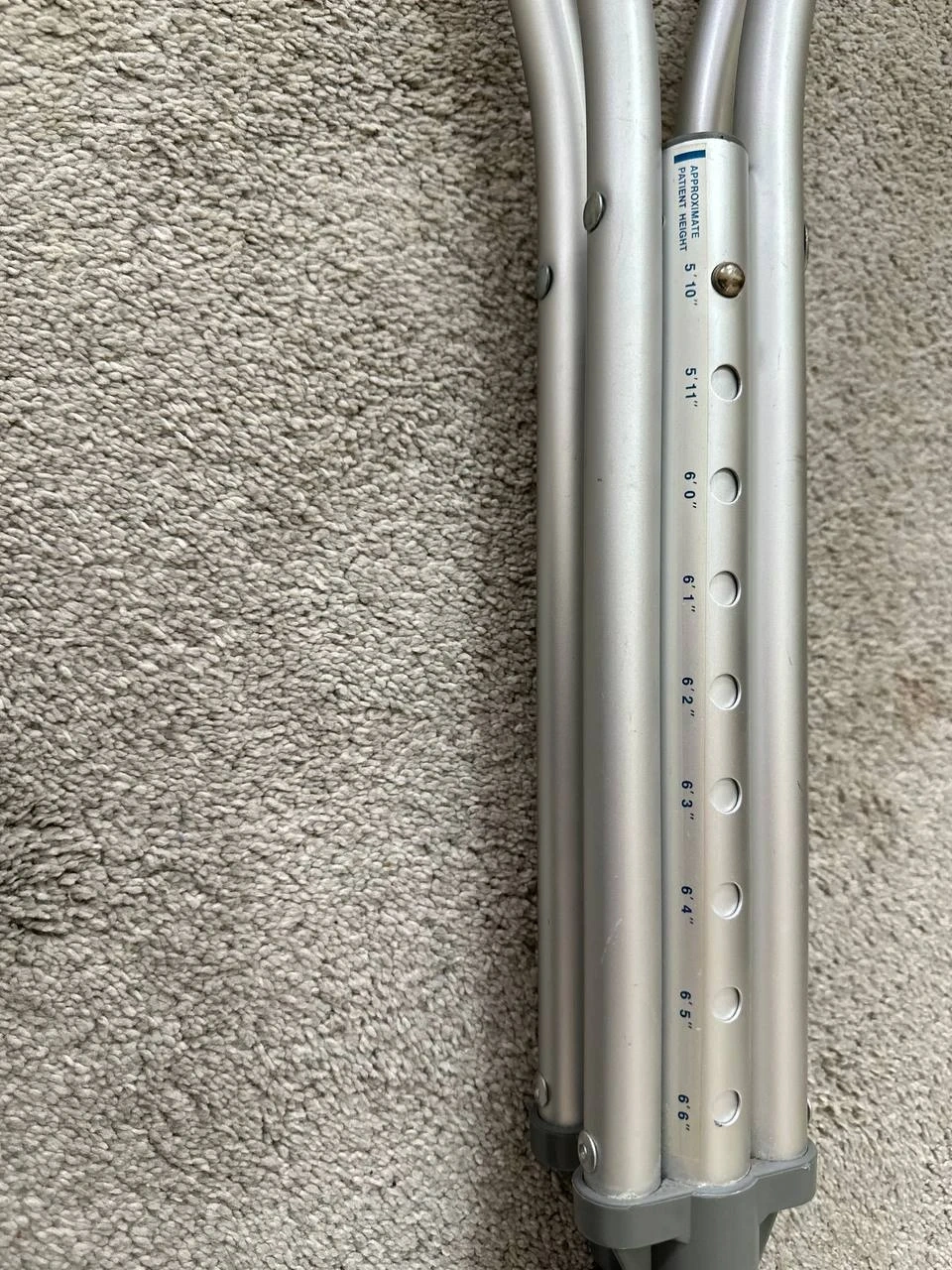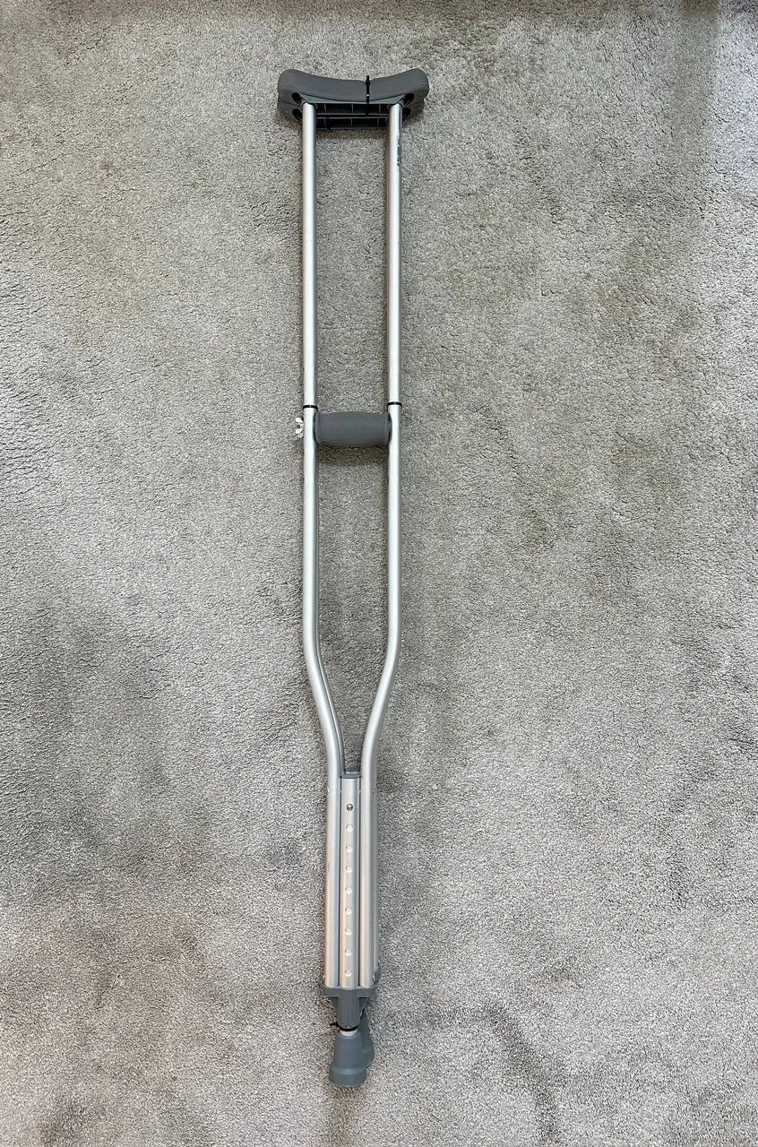 Cardinal Health aluminum crutches for adults. Max weight cap is 300 lbs. Approximate patient height range is 5'0" to 5'6".