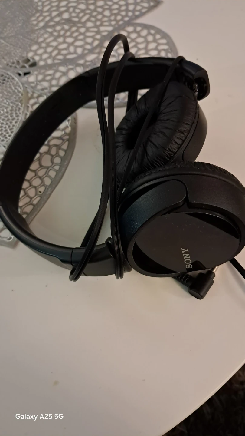 Sony over-ear headphones in black. They're lightweight and comfortable for extended wear. These headphones provide a solid audio experience for everyday listening.