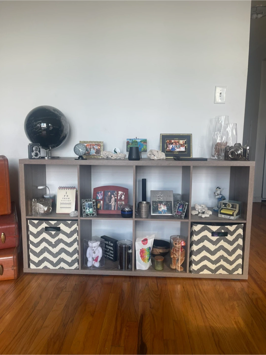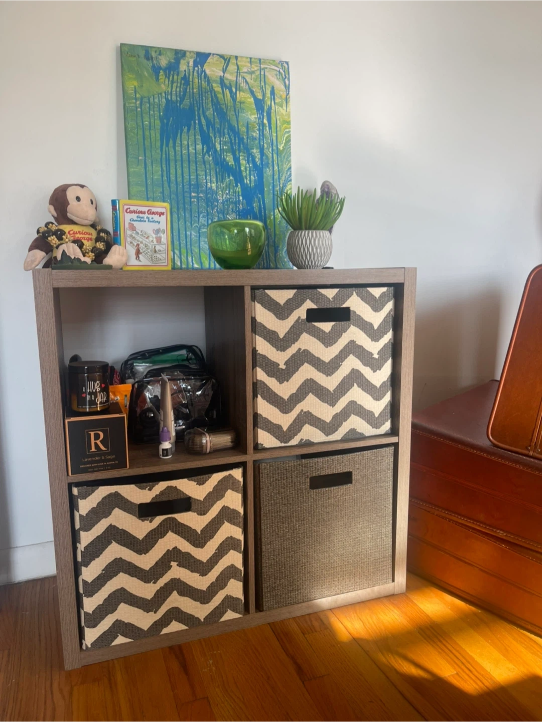 I'm selling a Cubes storage organizer shelf. It’s in great condition and perfect for organizing any room in your home. The neutral color fits well with any decor