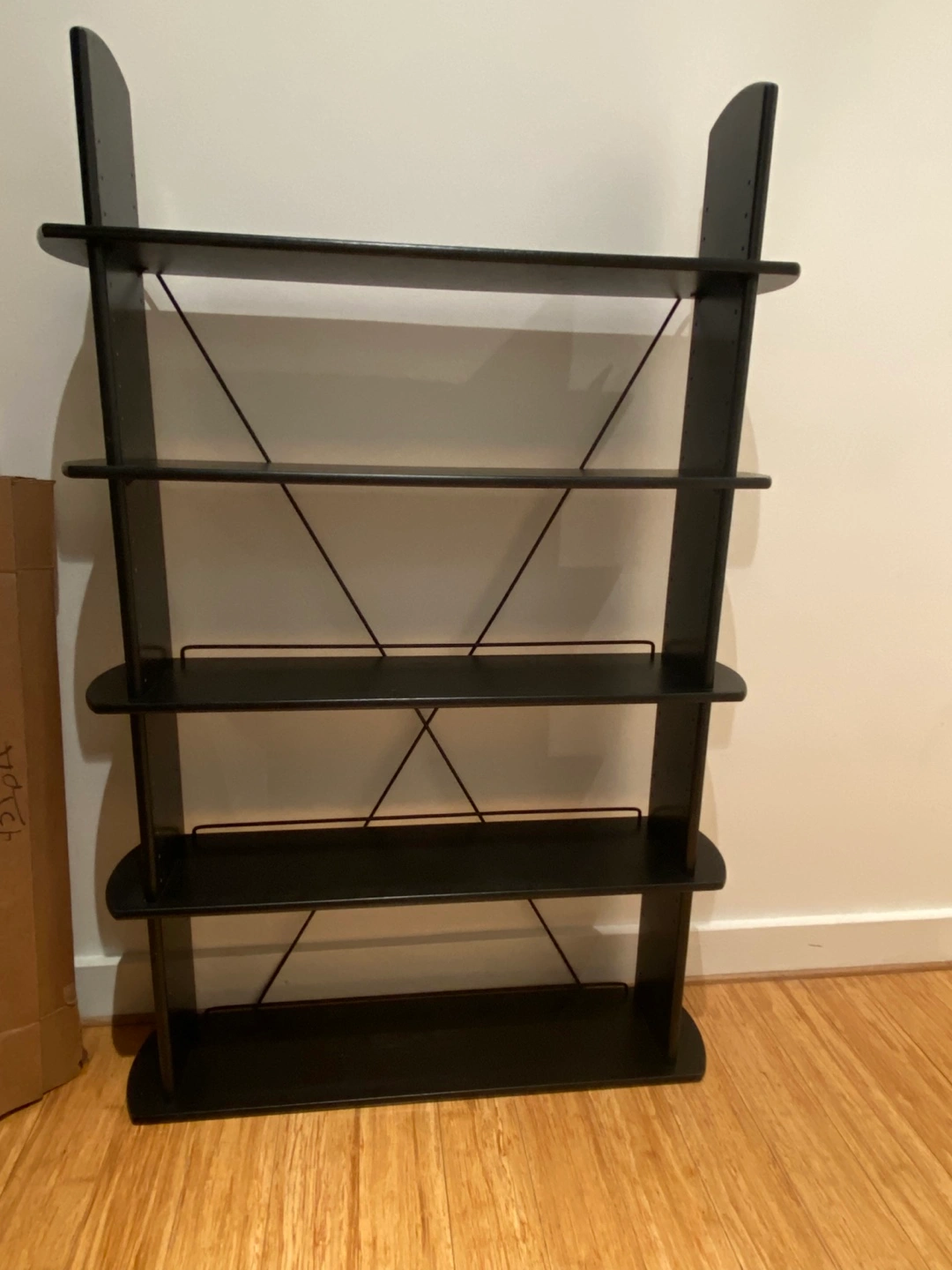 Selling TWO black DVD shelves/racks. They are in good condition and ready for a new home! Perfect for organizing your media collection or displaying other items. Easy assembly (it doesn’t need power tools to assemble); it’s already disassembled and packed away in boxes already (shown in last pic)