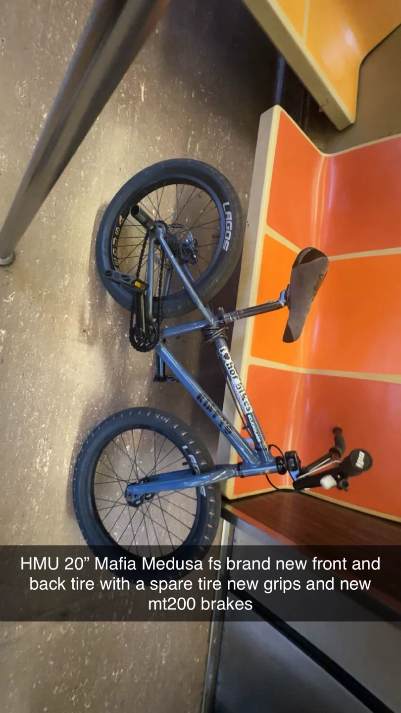 Selling a 20" Mafia Medusa BMX bike. It has brand new front and back tires, a spare tire, new grips, and new mt200 brakes