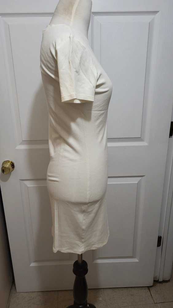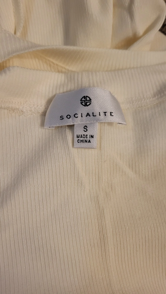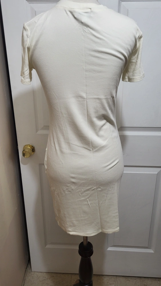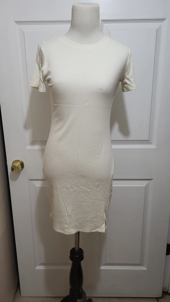 New without tags Socialite off-white mini dress. Size small. Made up of 85% Rayon and 15% Spandex. Has a tight slit perfect for spring and summer.