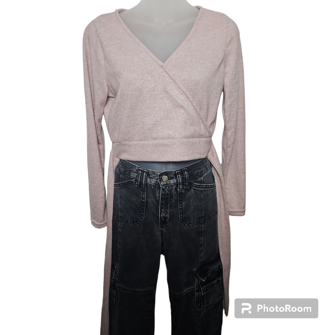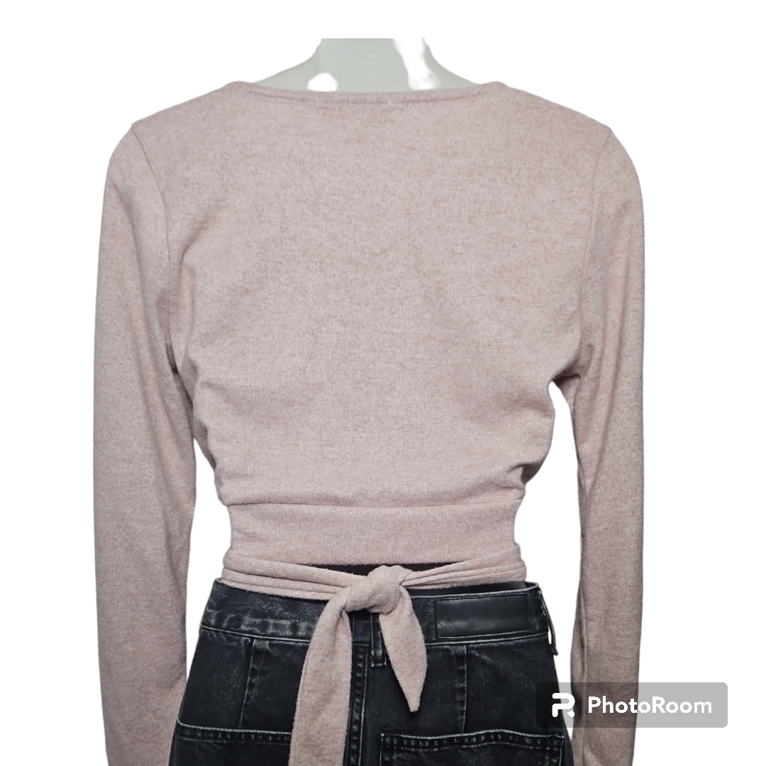 no comment Heather Pink Cropped Faux Wrap Top Sz L
