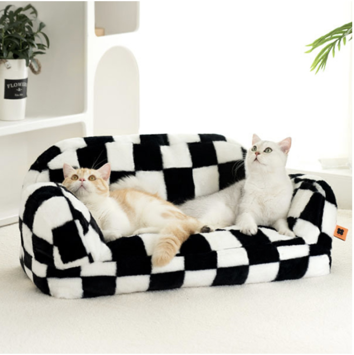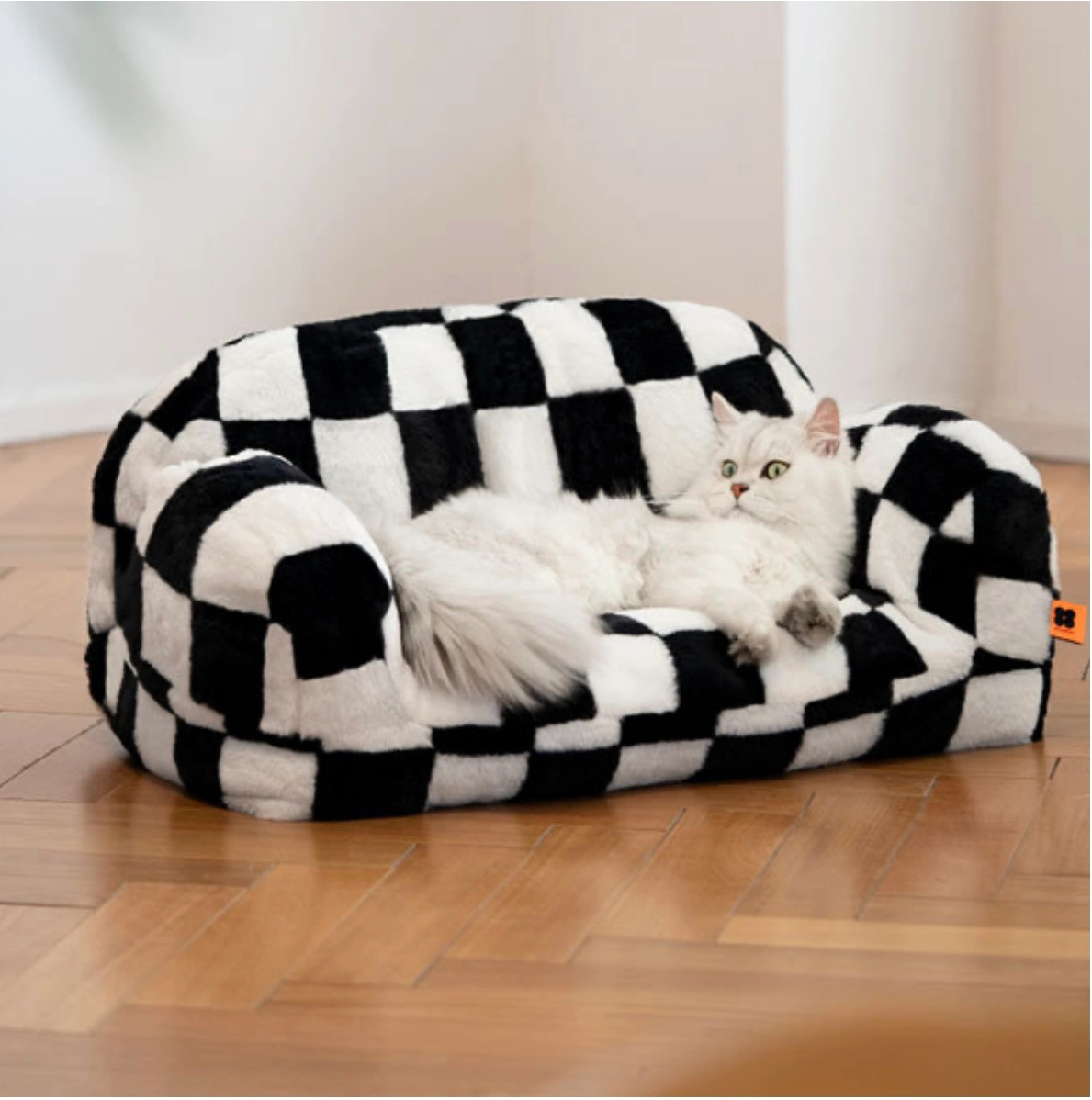 Our Black And White Checkered Pet Bed is the perfect cozy spot for your furry friend! Available in both single and double sizes, this bed is suitable for pets weighing up to 15 pounds. The stylish checkered pattern adds a touch of sophistication to any room, while the bed's removable and washable cover ensures easy maintenance. Made from high-quality Dutch velvet, your pet will love snuggling up in this comfortable bed.