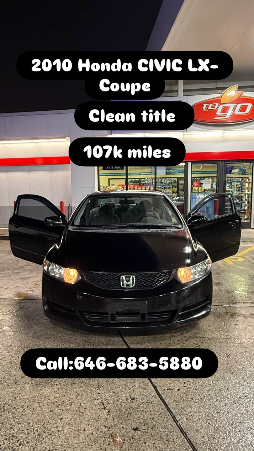 652010 HONDA CIVIC LX-Coupe 107k Original Miles ****Clean title**** No accidents clean car runs and drives great! Recently passed emissions Fresh oil change recently painted everything and much more. call or text6️⃣4️⃣6️⃣6️⃣8️⃣3️⃣5️⃣8️⃣8️⃣0️⃣ $5,995 Cash price
