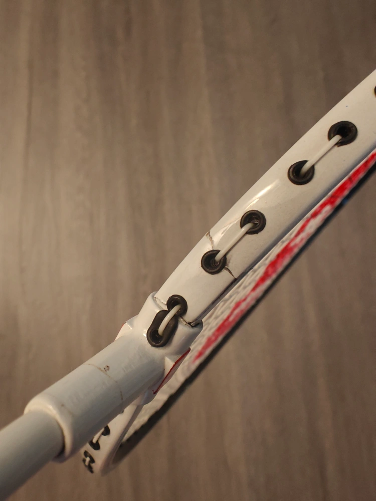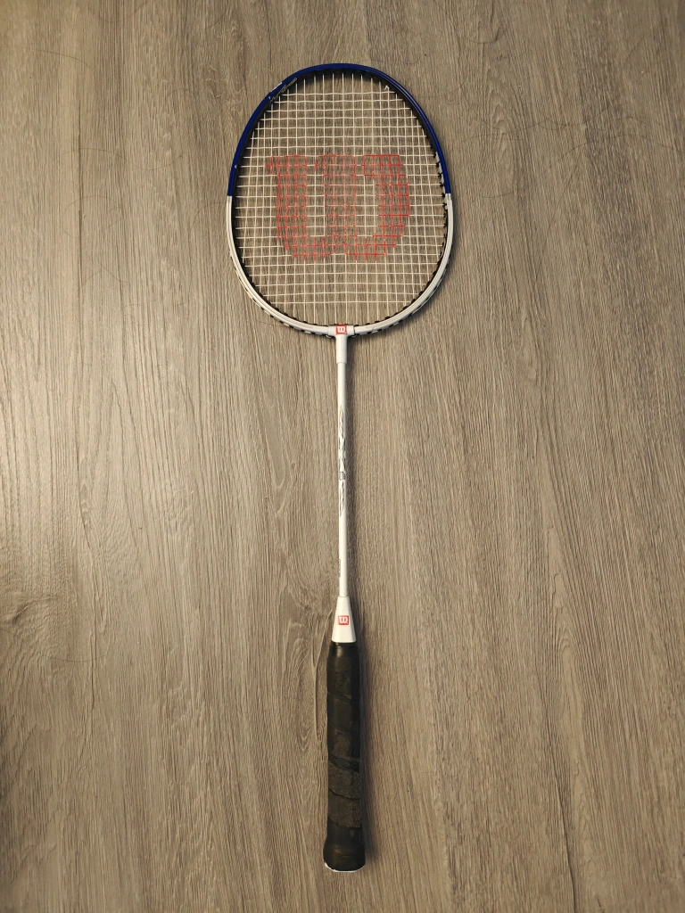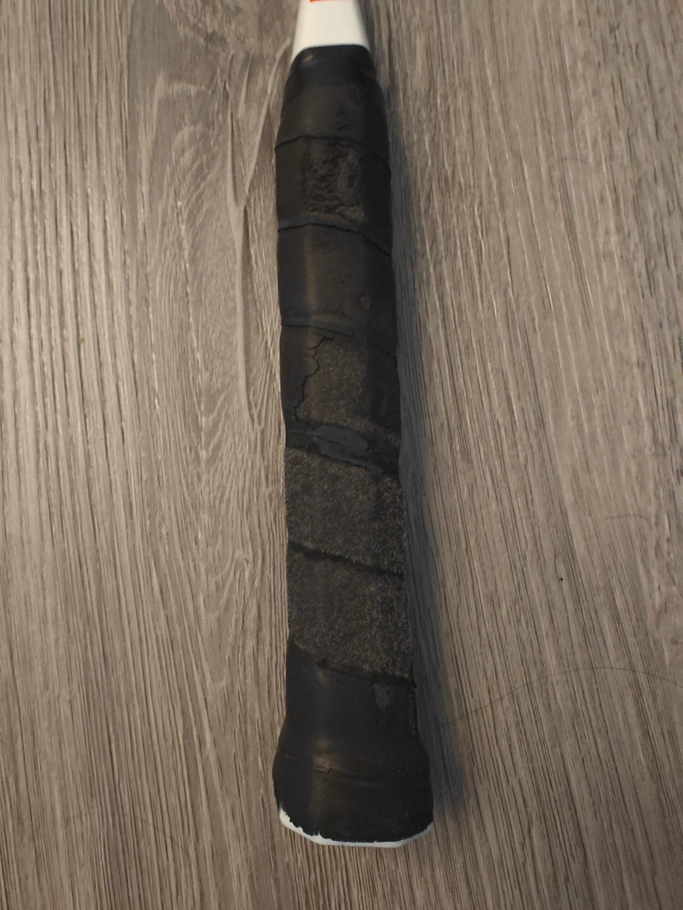 Old badminton racquet that I used to use in highschool. The grip is quite worn out and the frame has a slight crack.