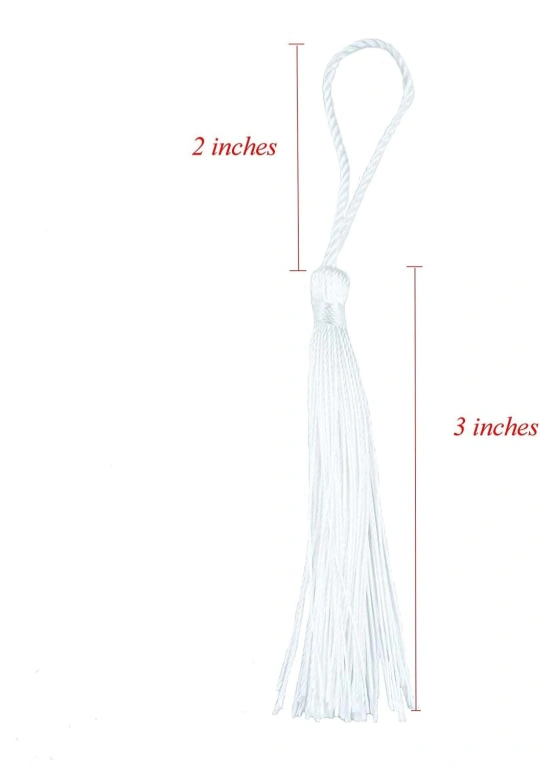 Length: total 5 inches(3 inch+2 inch loop)the knot is 0.27 inch, every single tassel is made of 100 pcs string