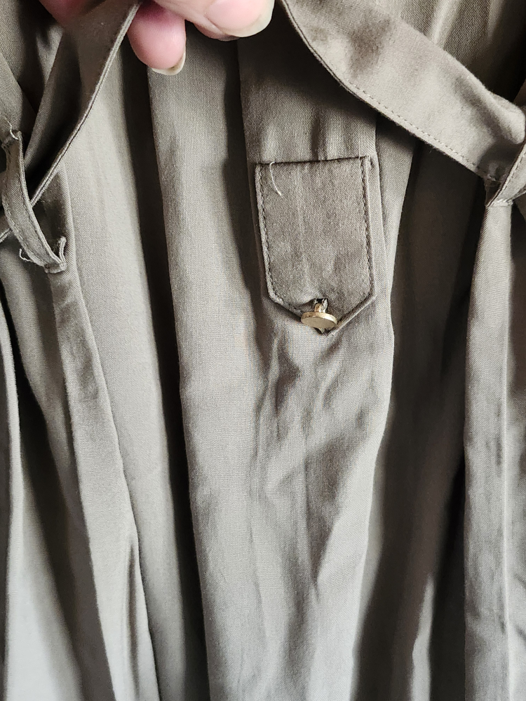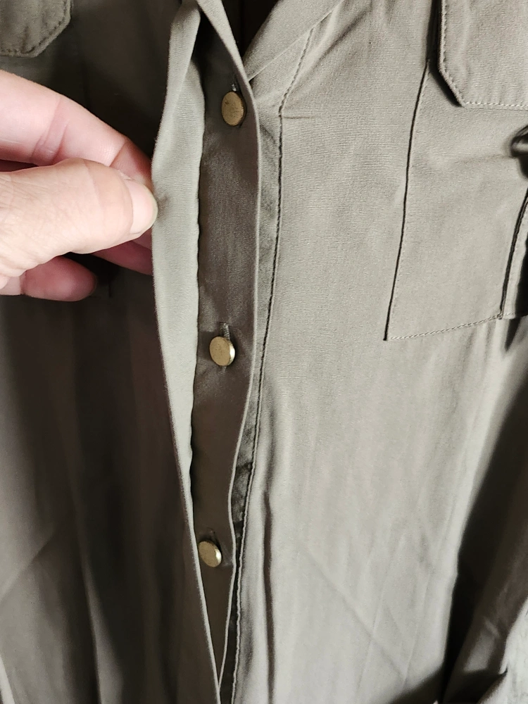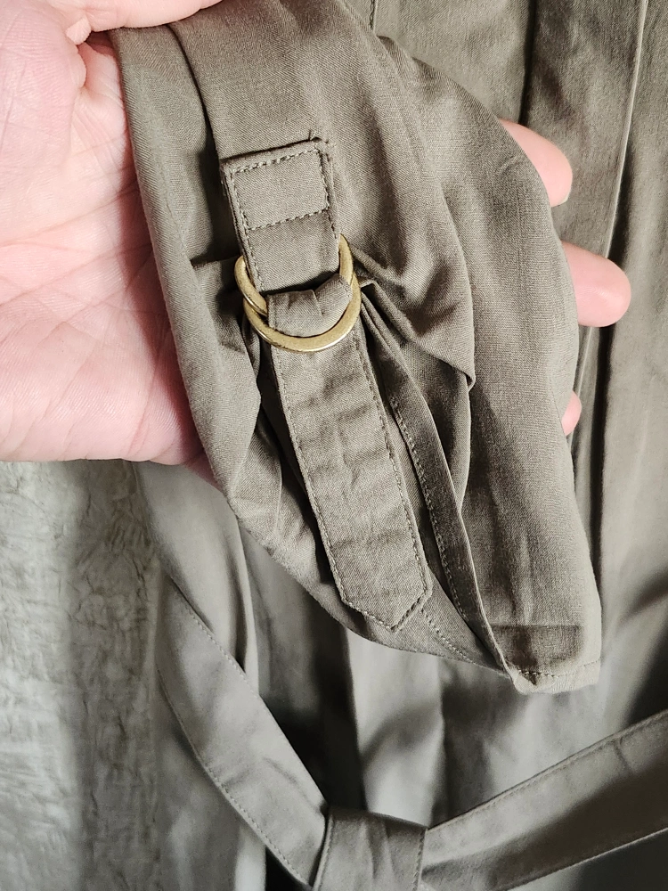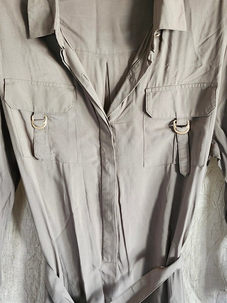 Super soft and lightweight. Army style dress. Button down halfway. Has buckle decal on sleeve cuffs. Breast pockets and belt included. So cute. New without tags. 100% Viscose