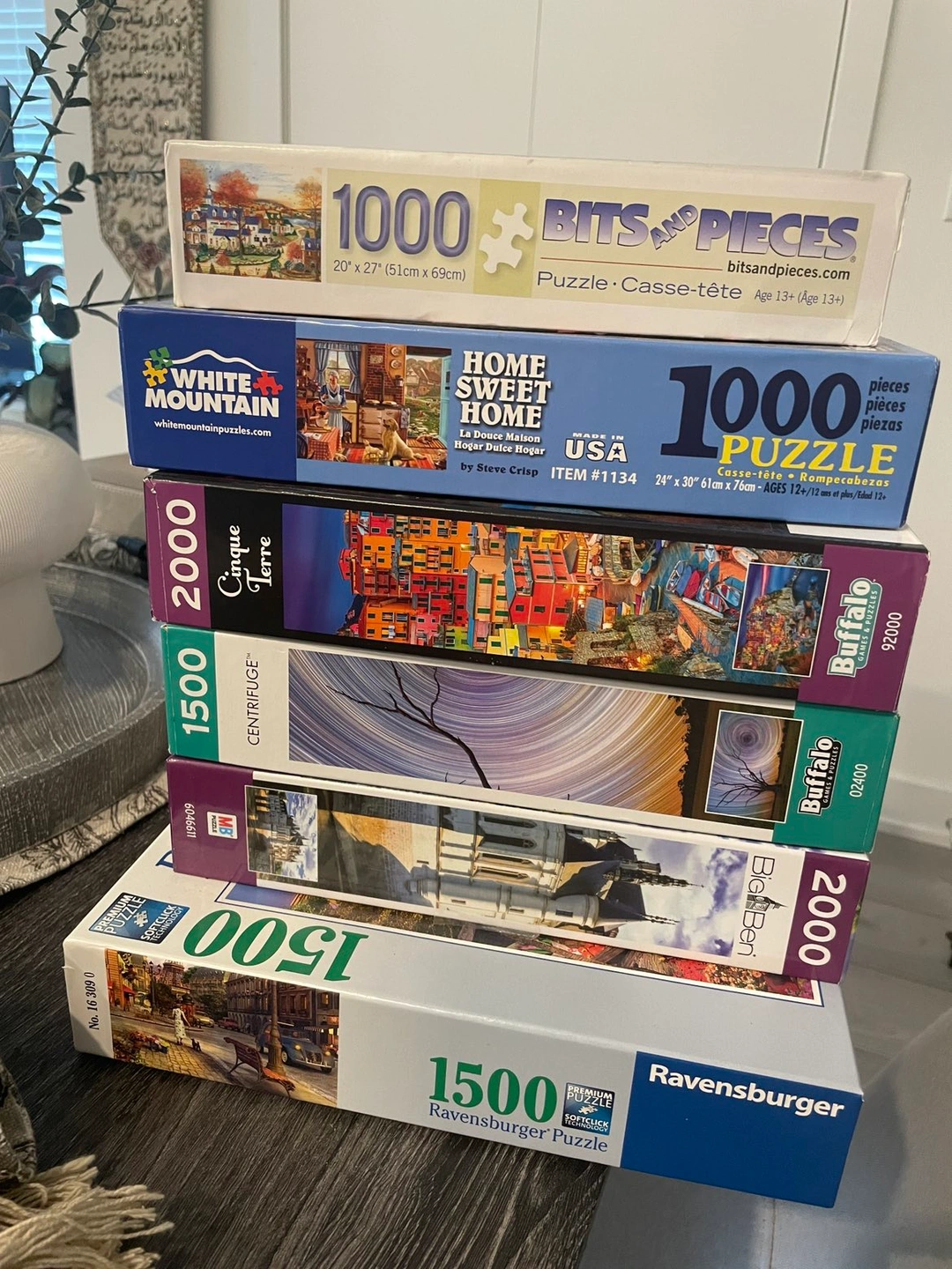 6 jigsaw puzzles, Ravensburger and other types. Ranging from 1000 to 2000 pieces. May be missing a piece or two but for the most part they are complete. Selling them together or separate.