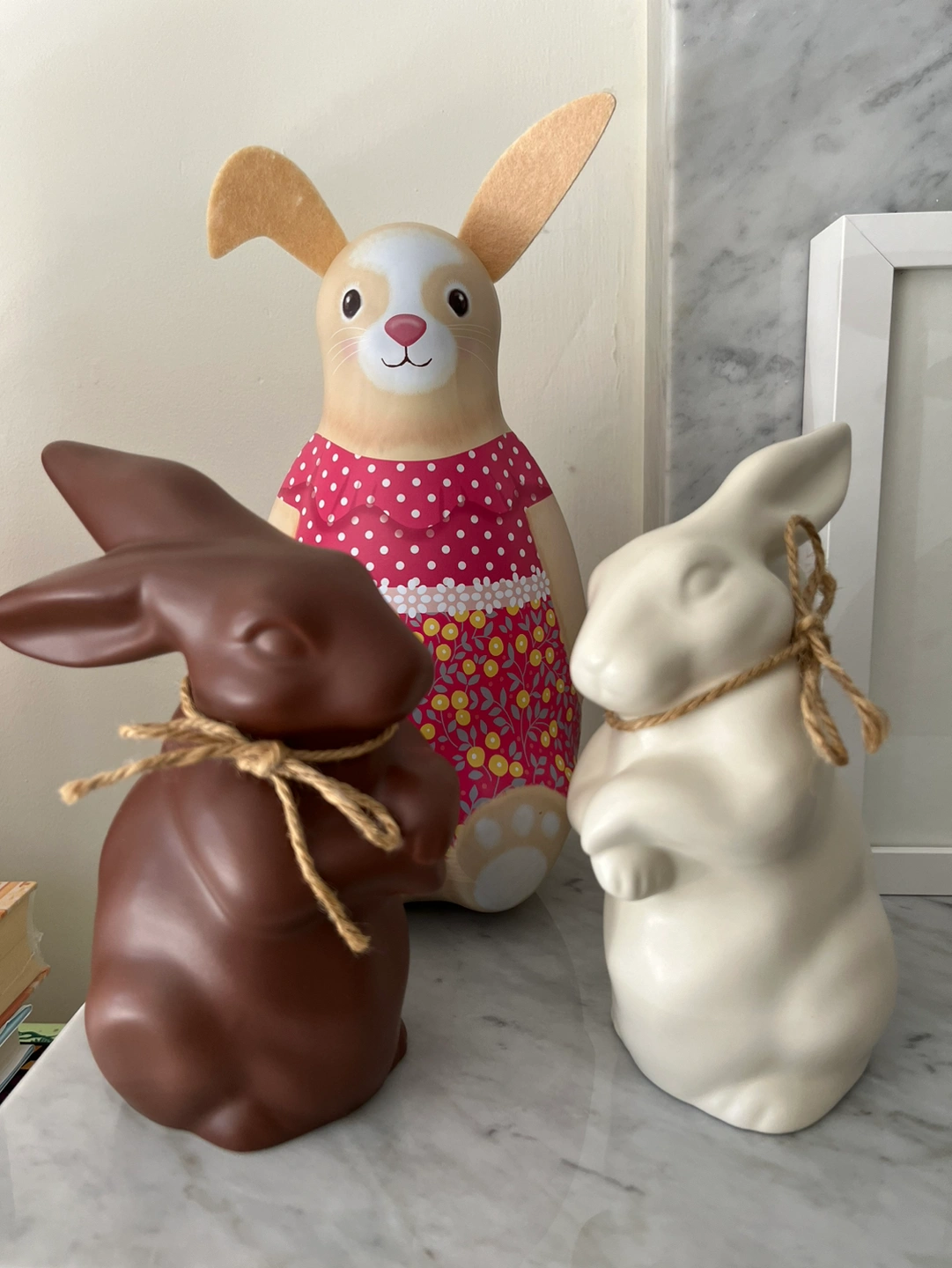 The faux chocolate bunnies are also coin banks!