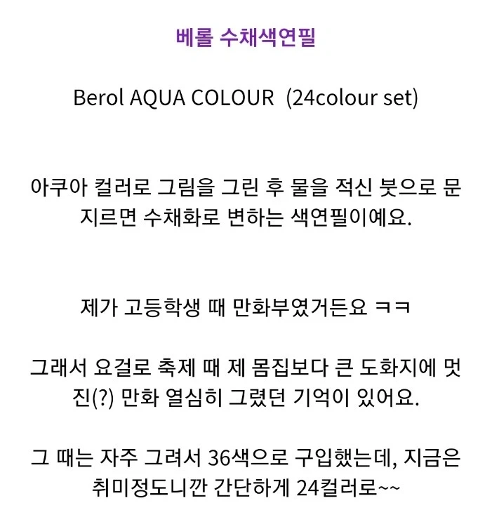 2. Dong-A Berol Aquacolor(동아 베롤 아쿠아) 12색 색연필은 그림을 그리고 그위에 붓으로 물을 덧입히면 수채화처럼 표현되는 특수한 색연필입니다.