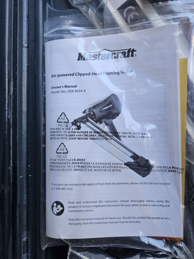 never used air powered Mastercraft framing nail gun.