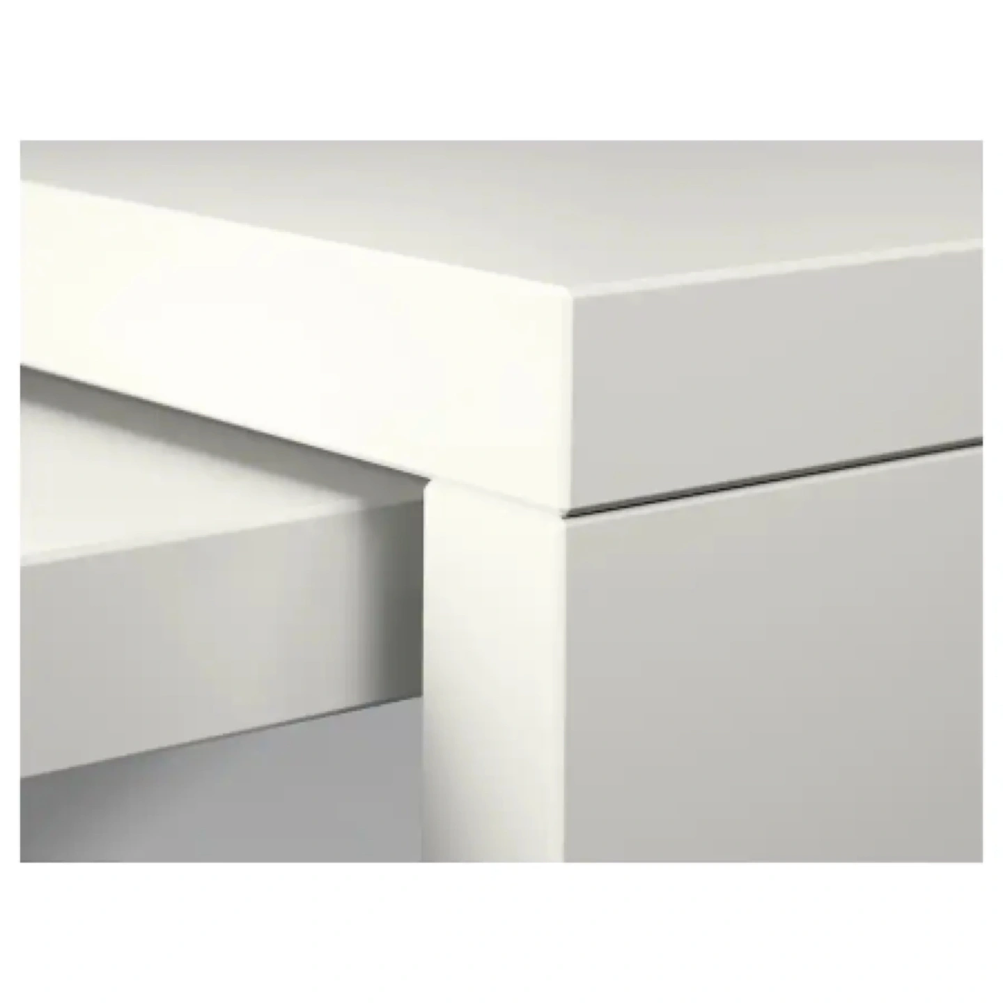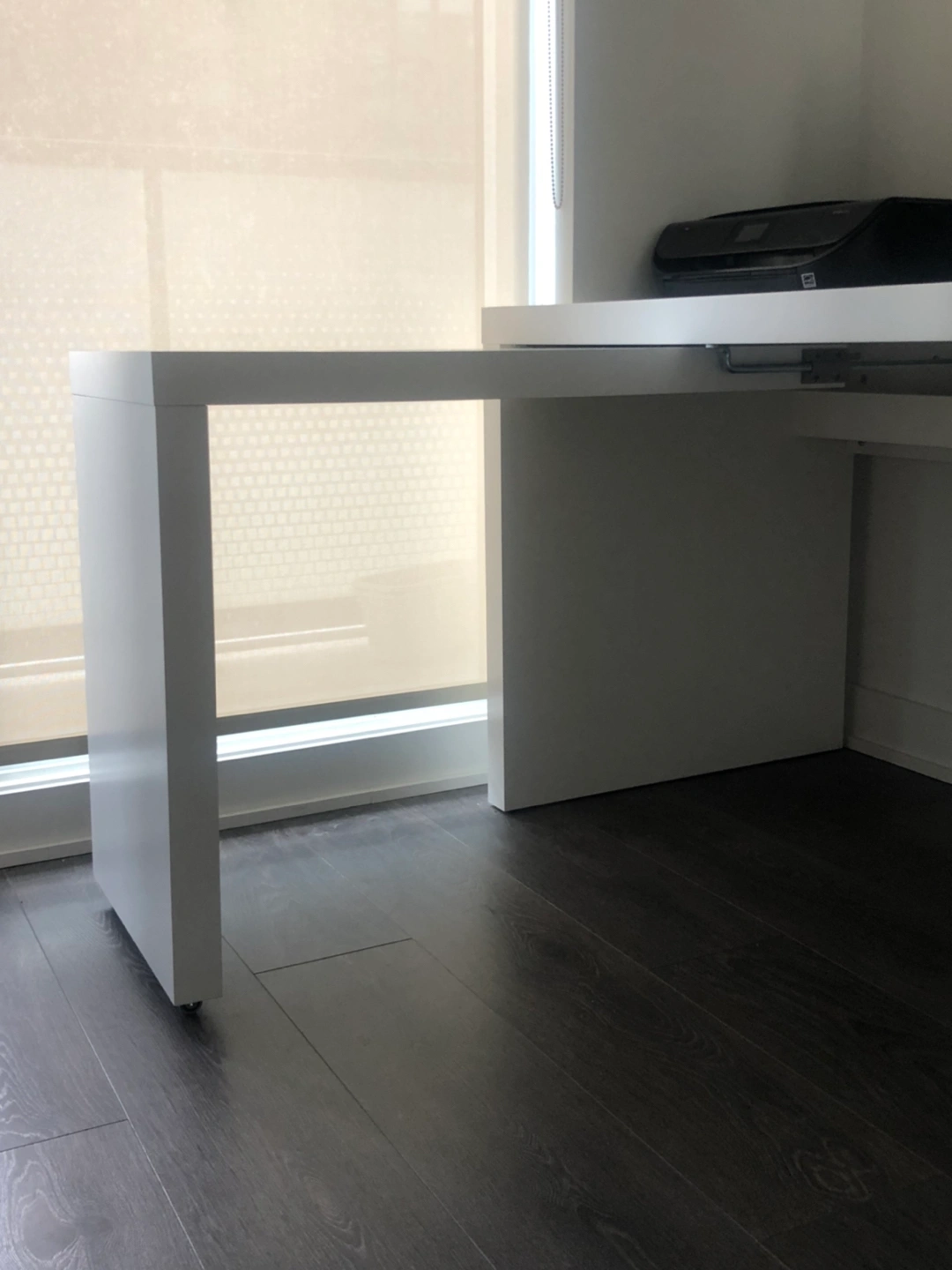 Ikea white malm desk with the option pull-out panel that can be installed on either side of the desk.