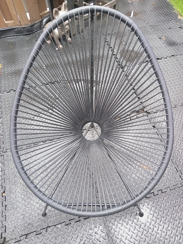 This classic wire Acapulco chair, with its supportive strings and fun shape will look great in any outdoor setting, from the city balcony to the countryside patio.