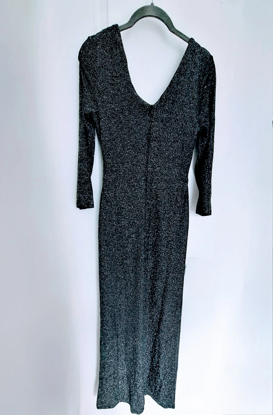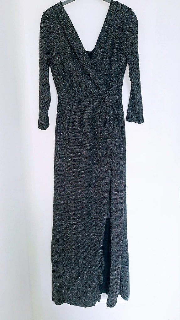 Deep v neck,3/4 sleeve,ruffle detailed,high split,long style