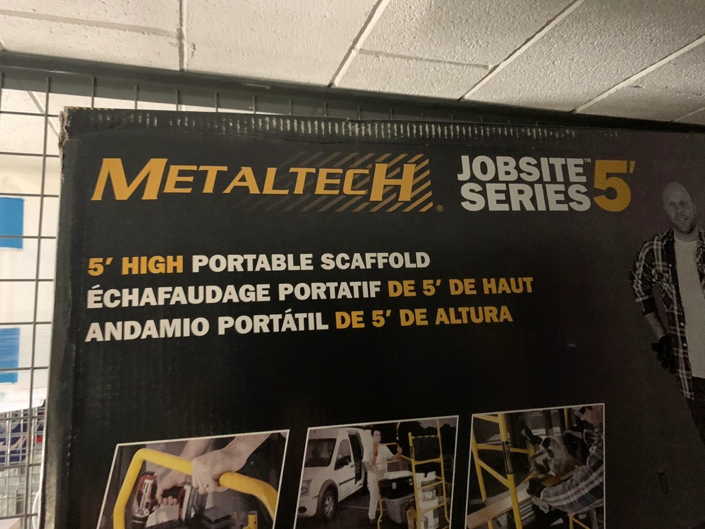 Metaltech Jobsite series 5’ portable scaffolding w/ 900lbs capacity. Open-box but not used, pieces still sealed in original packaging. Usually retails for around $300.00. Selling for $200.00, send best offer!