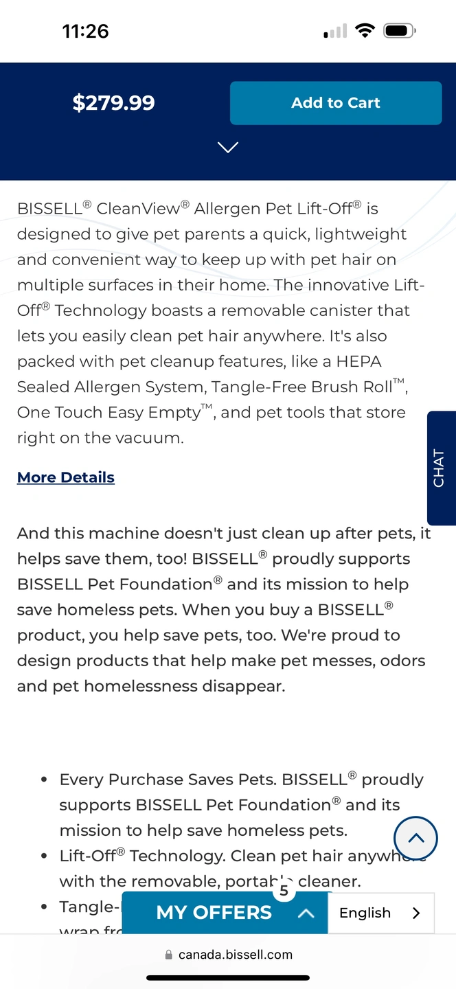 BISSELL® CleanView® Allergen Pet Lift-Off® is designed to give pet parents a quick, lightweight and convenient way to keep up with pet hair on multiple surfaces in their home. The innovative Lift-Off® Technology boasts a removable canister that lets you easily clean pet hair anywhere. It's also packed with pet cleanup features, like a HEPA Sealed Allergen System, Tangle-Free Brush Roll™, One Touch Easy Empty™, and pet tools that store right on the vacuum.